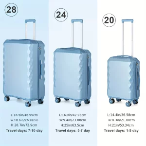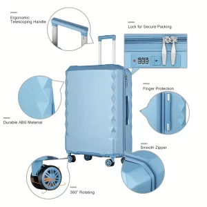 G00905Light Blue Luggage Set – Durable ABS Hard Shell Suitcase