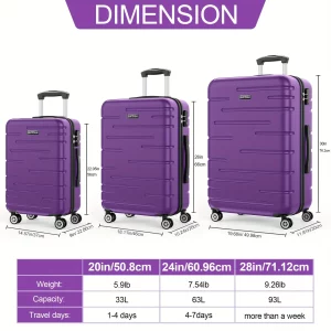 G00917Three-piece 20/24/26-inch luggage set, expandable carry-on luggage
