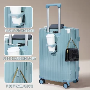 G00998Blue 20″ Aluminum Frame 4-Piece Luggage Set