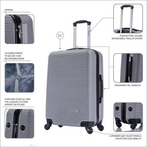 G01002Hardshell Lightweight Luggage with Spinner Wheels Handle and Trolley Silver