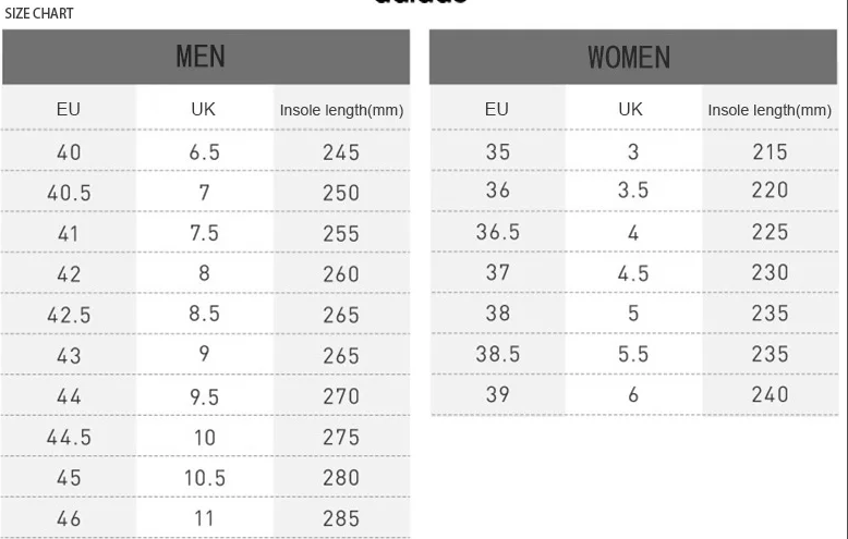 36, 36.5, 37, 38, 38.5, 39, 40, 40.5, 41, 42.5, 43, 44, 45
