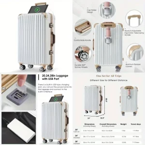 G0888 Aluminum alloy frame carry-on suitcase with USB charging port, suitable for business travel and beach travel