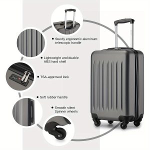 G0972 Lightweight hard shell suitcase, TSA lock, ABS material, vertical grain design, retractable aluminum handle – Business and leisure travelers