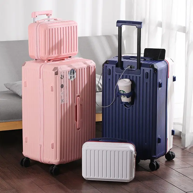 K1147 New Extra Large Capacity Unisex Luggage Cup Holder Password Lock USB Charging Mother Child Suitcase Set luggage set travel bag
