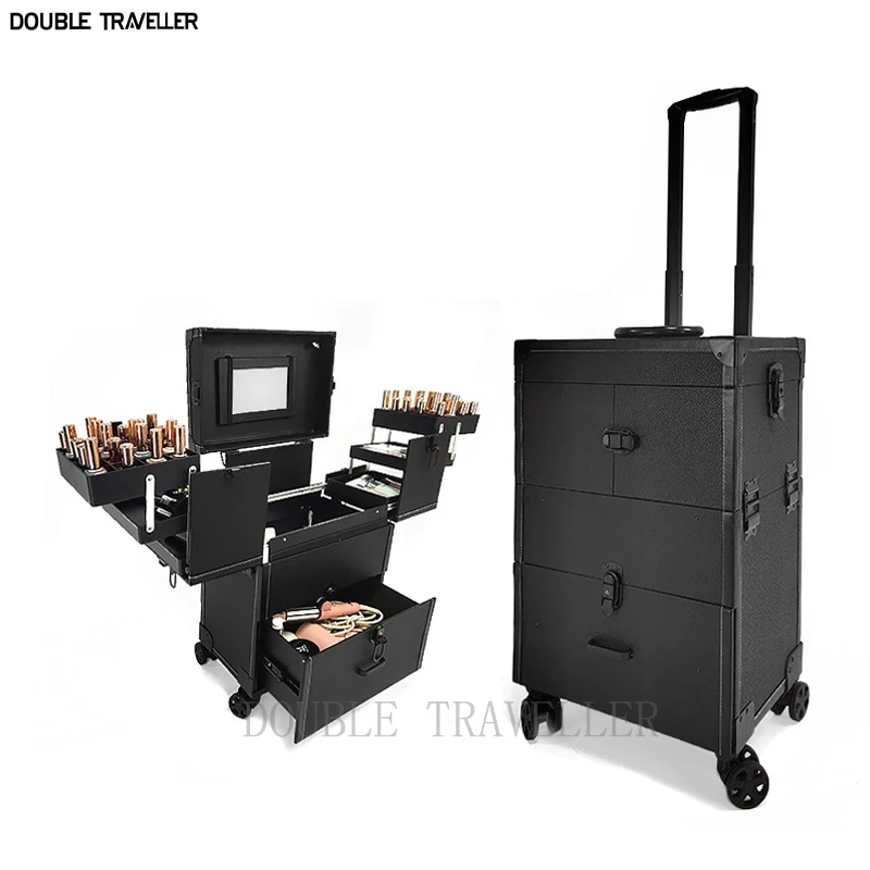 K1910 New Women Trolley Cosmetic Bags on Wheel,Nails Makeup Toolbox,Detachable Foldable Beauty Suitcase