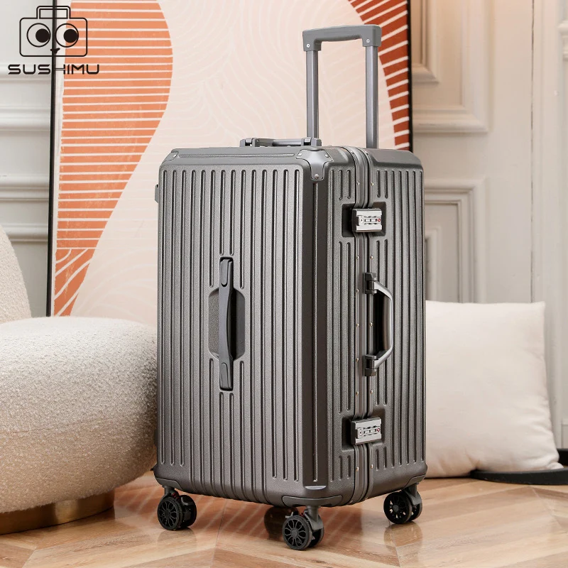 K1980 Suitcase Wide Handle Travel Suitcase Men 20 24 26 Carry-On Luggage Women PC Aluminum Frame Trolley Case