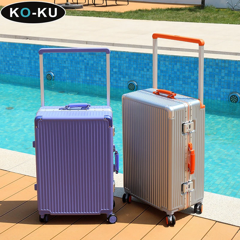 K2032 Aluminium Frame Luggage Women 20 Inch Boarding Box Mute Universal Wheel Wide Handle Travel Suitcase
