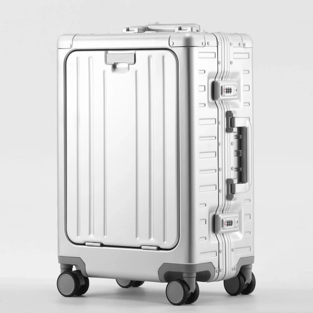 K2069 All Aluminum-magnesium Suitcase Front Opening Rolling Luggage with USB Charging Plug TSA Lock Trolley Case