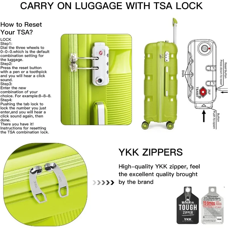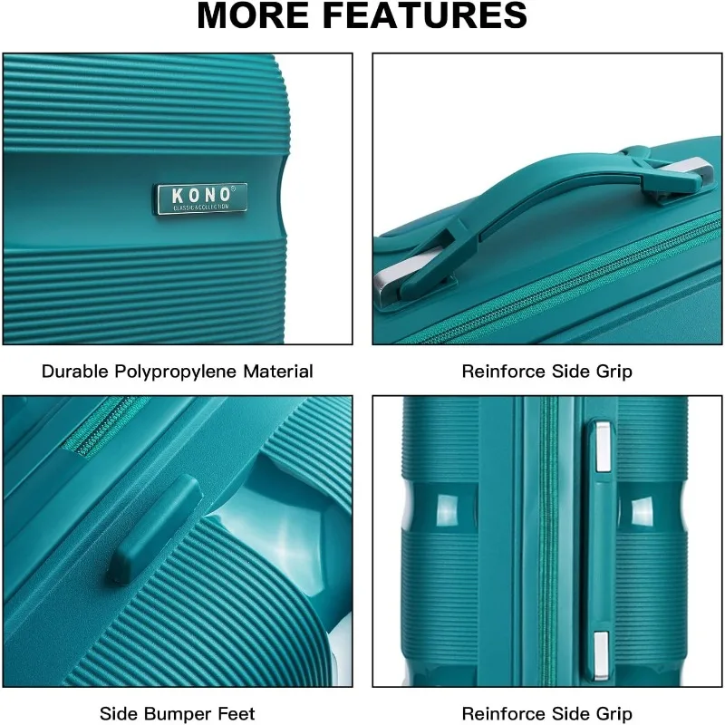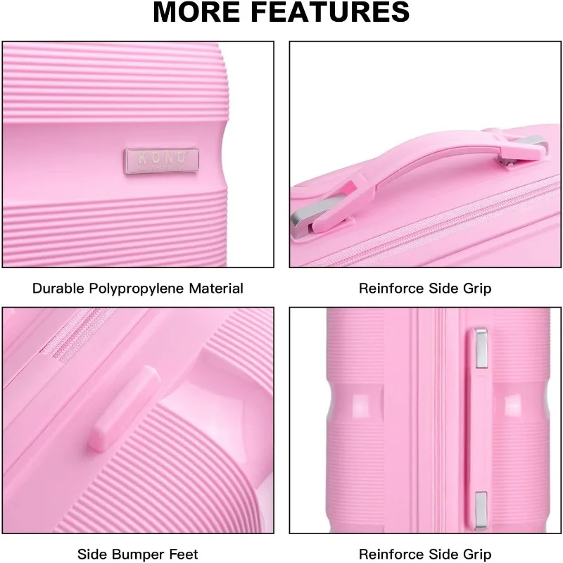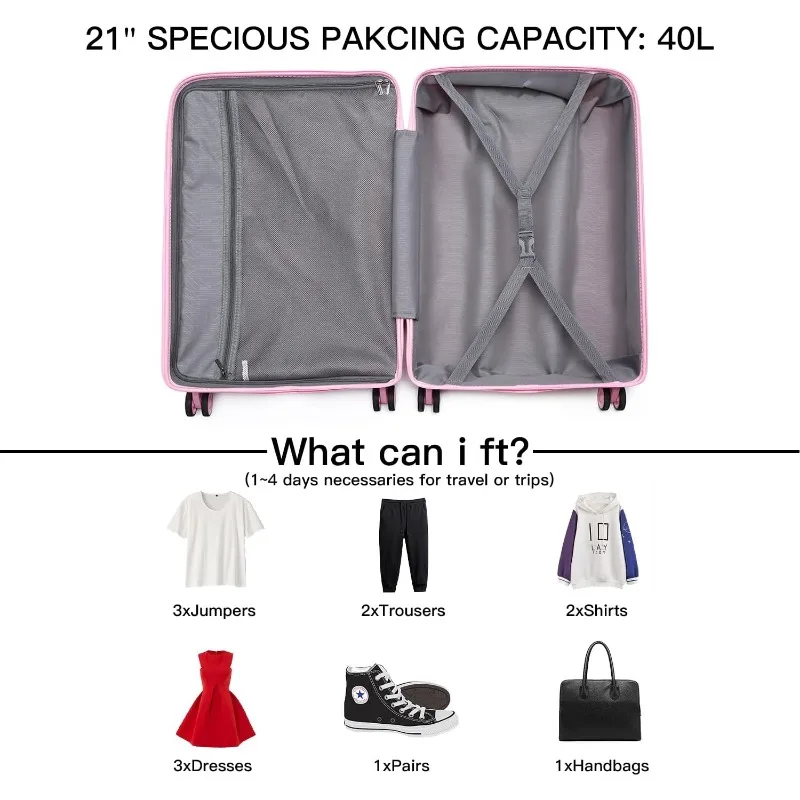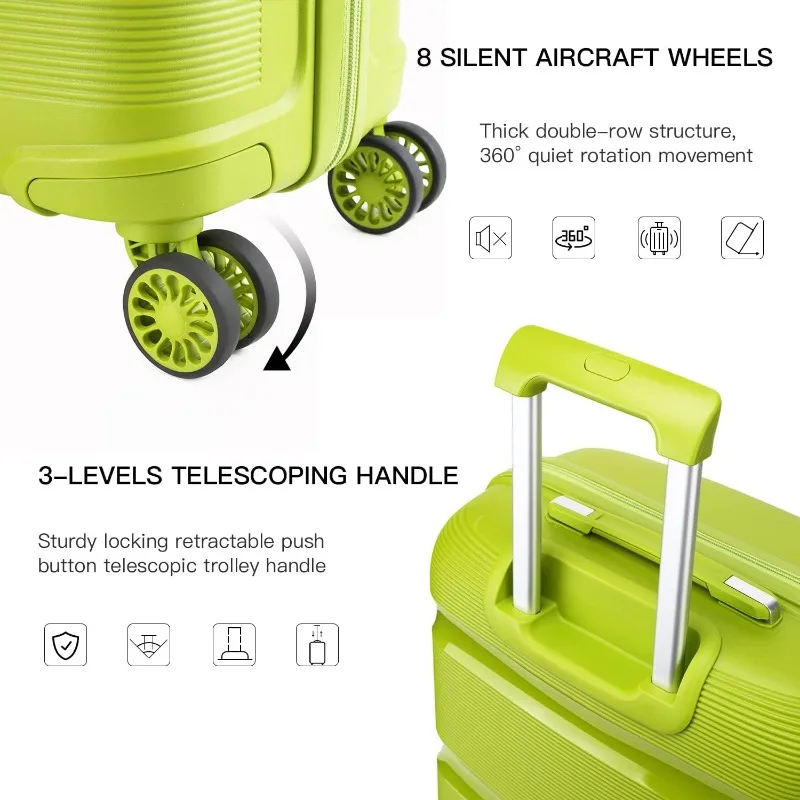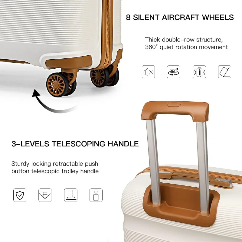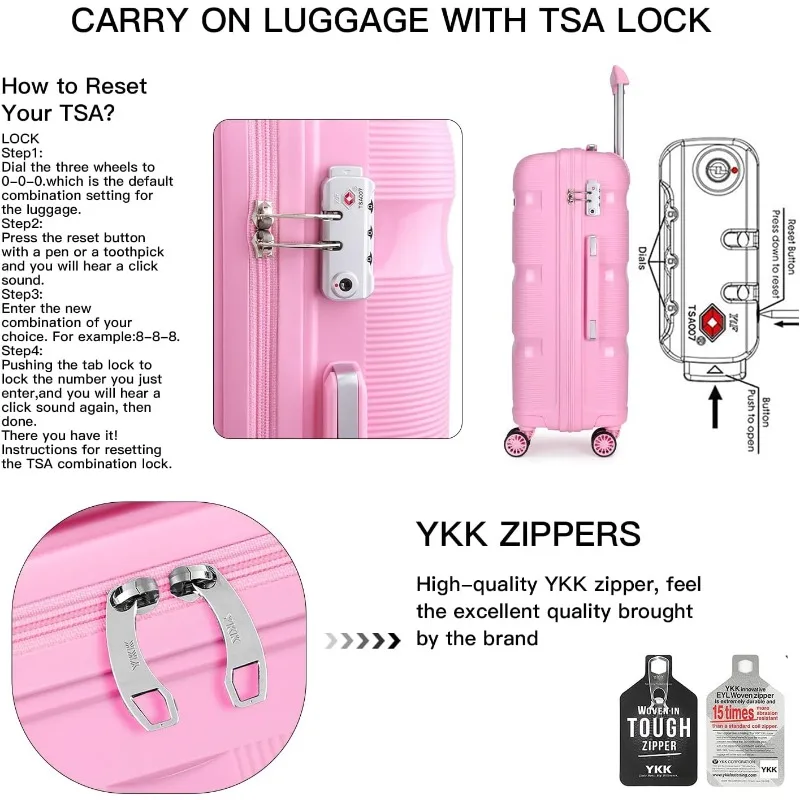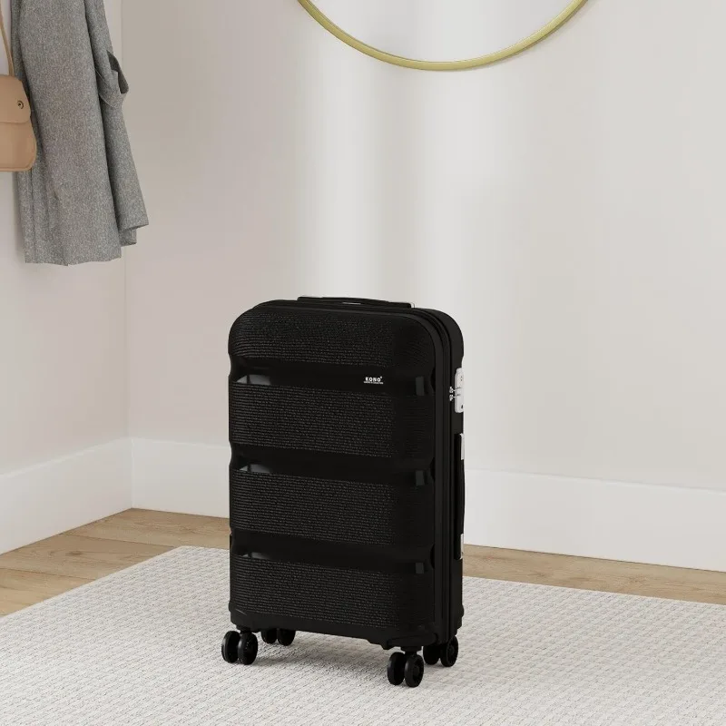 K557 Carry On Luggage Hard Shell Travel Trolley 4 Spinner Wheels Lightweight Polypropylene Suitcase