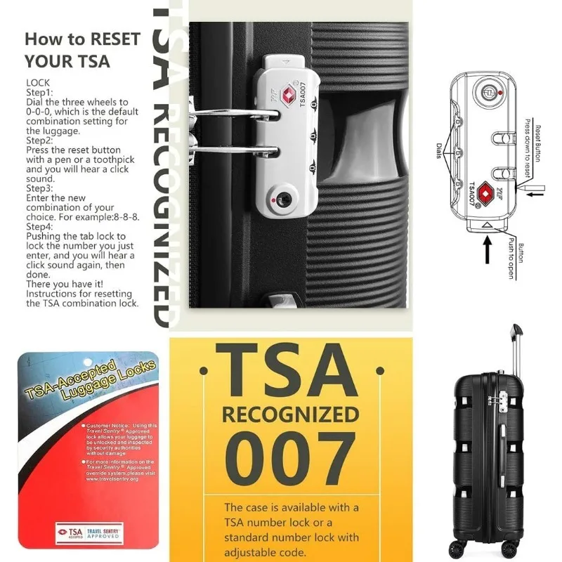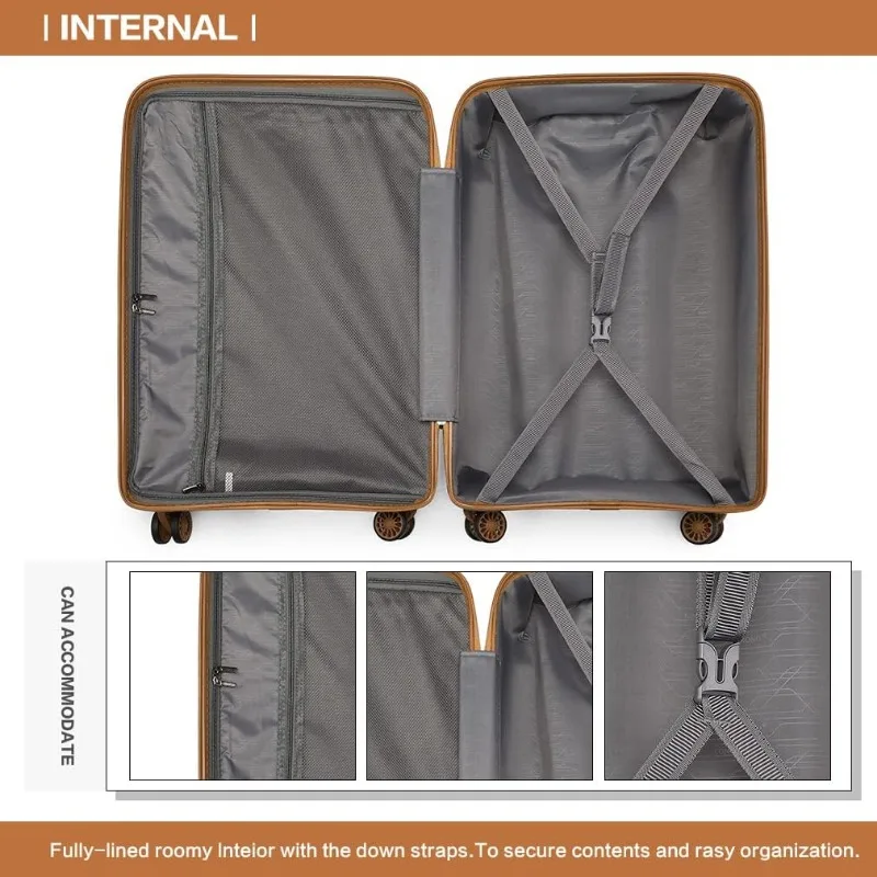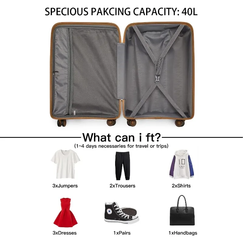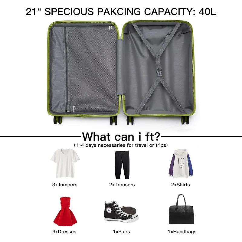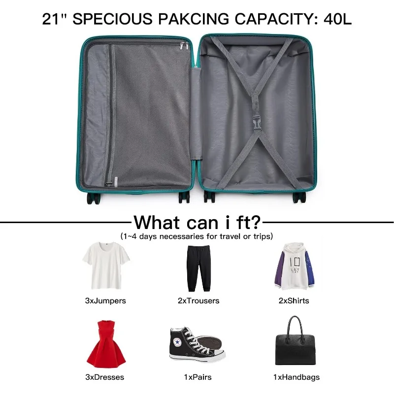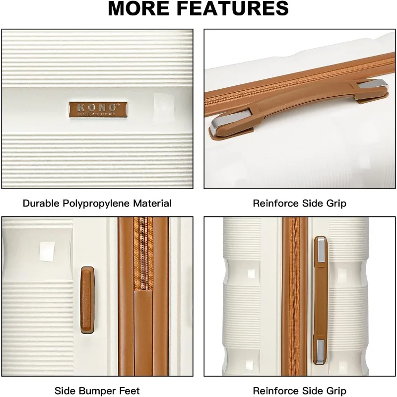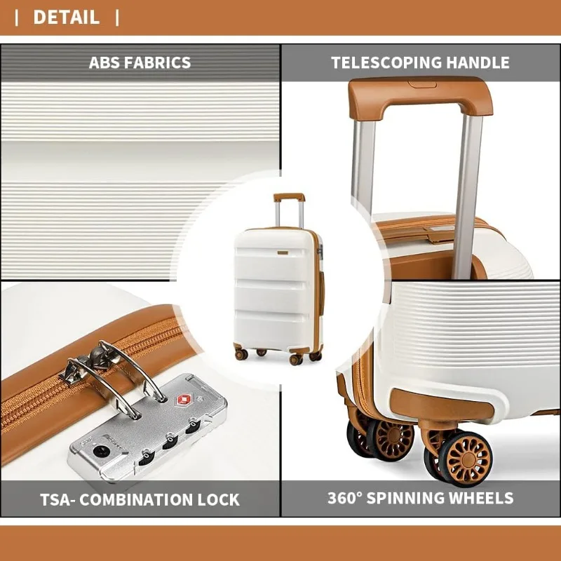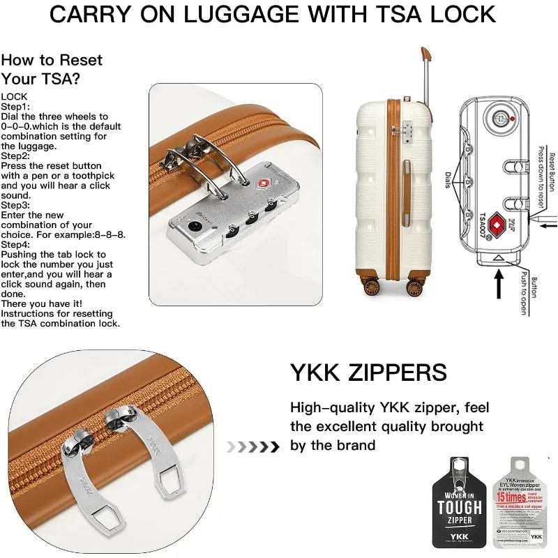 K557 Carry On Luggage Hard Shell Travel Trolley 4 Spinner Wheels Lightweight Polypropylene Suitcase