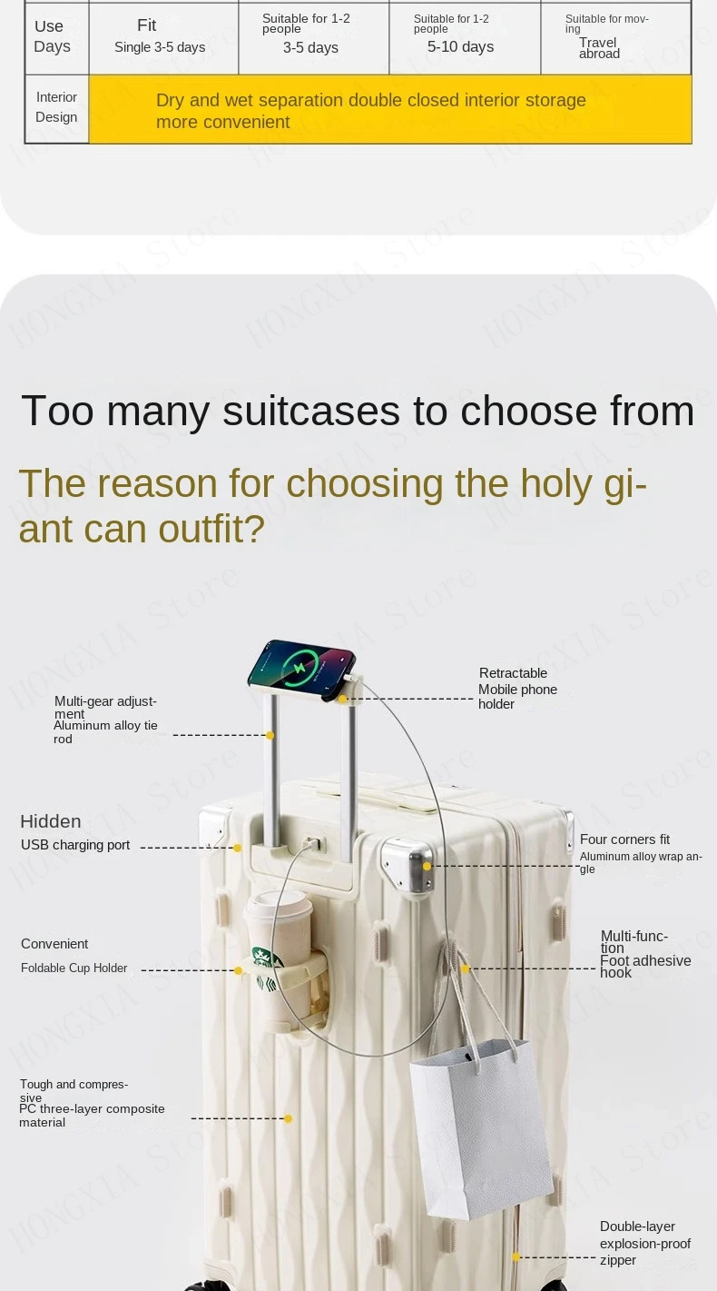 K592 Trip Large Capacity Luggage with USB Cup Holder Inch TSA Password Trolley Case