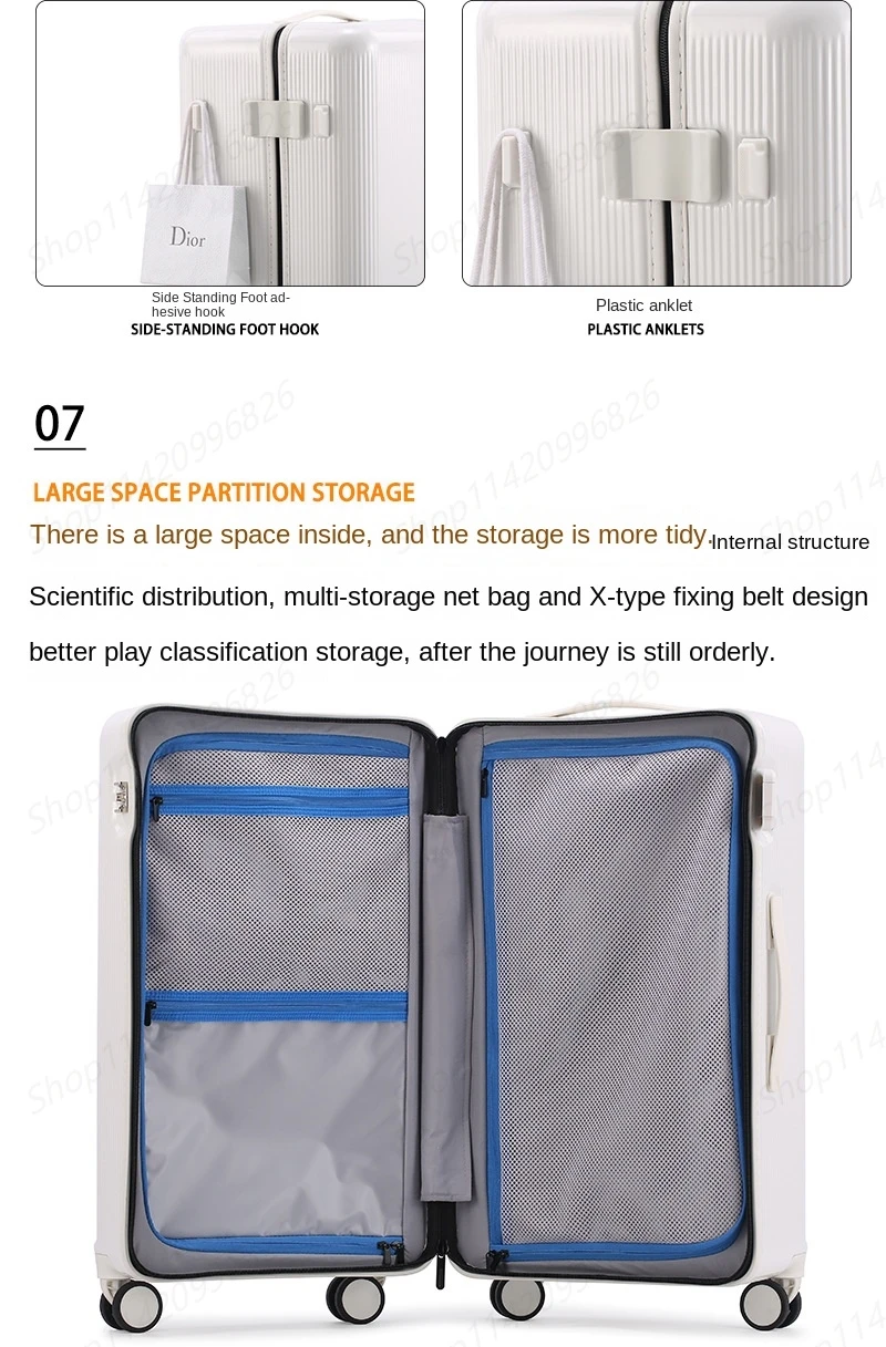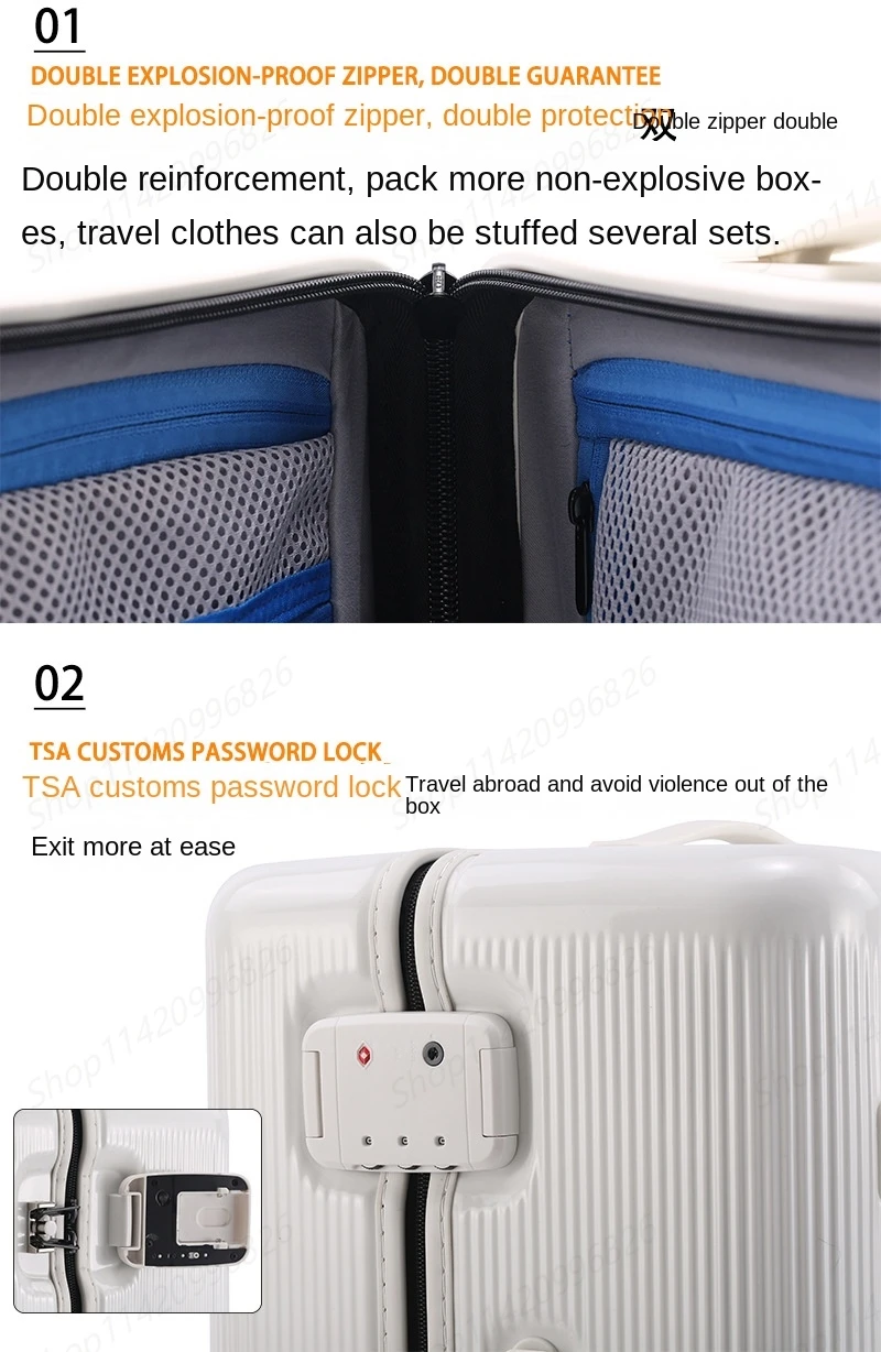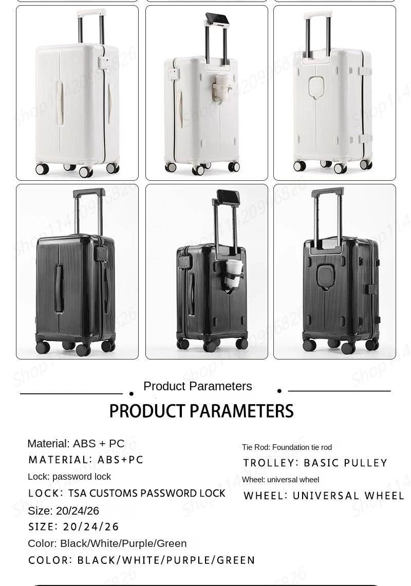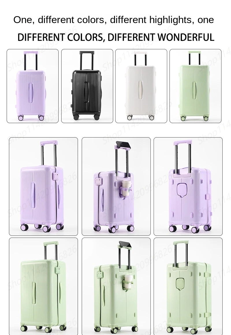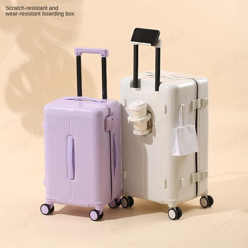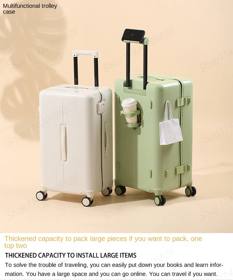 K595 Large Capacity Luggage 20/24/26 inch Boardable with Cup Holder Password Travel Zip Suitcase on Wheels Light Trolley Case