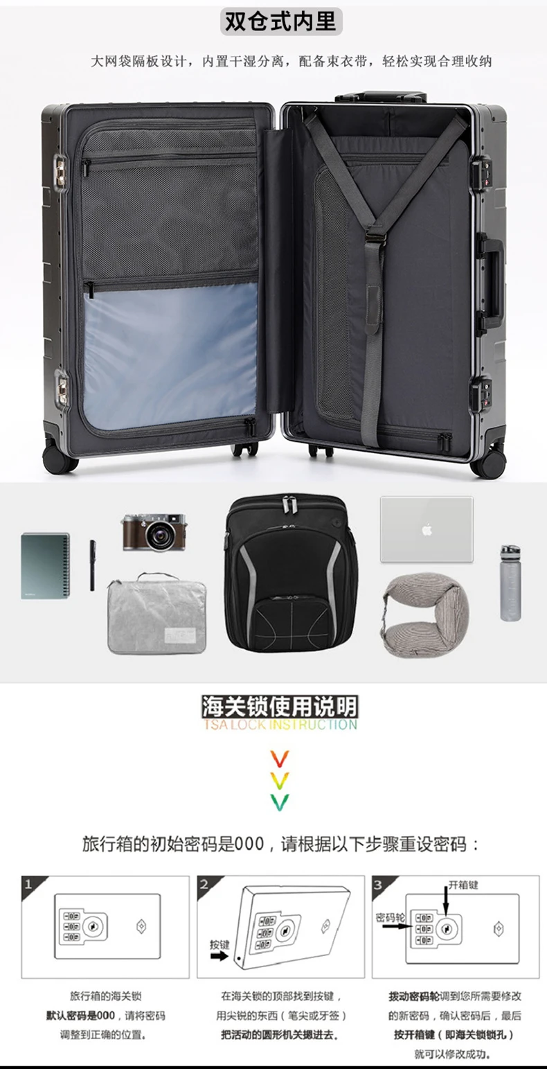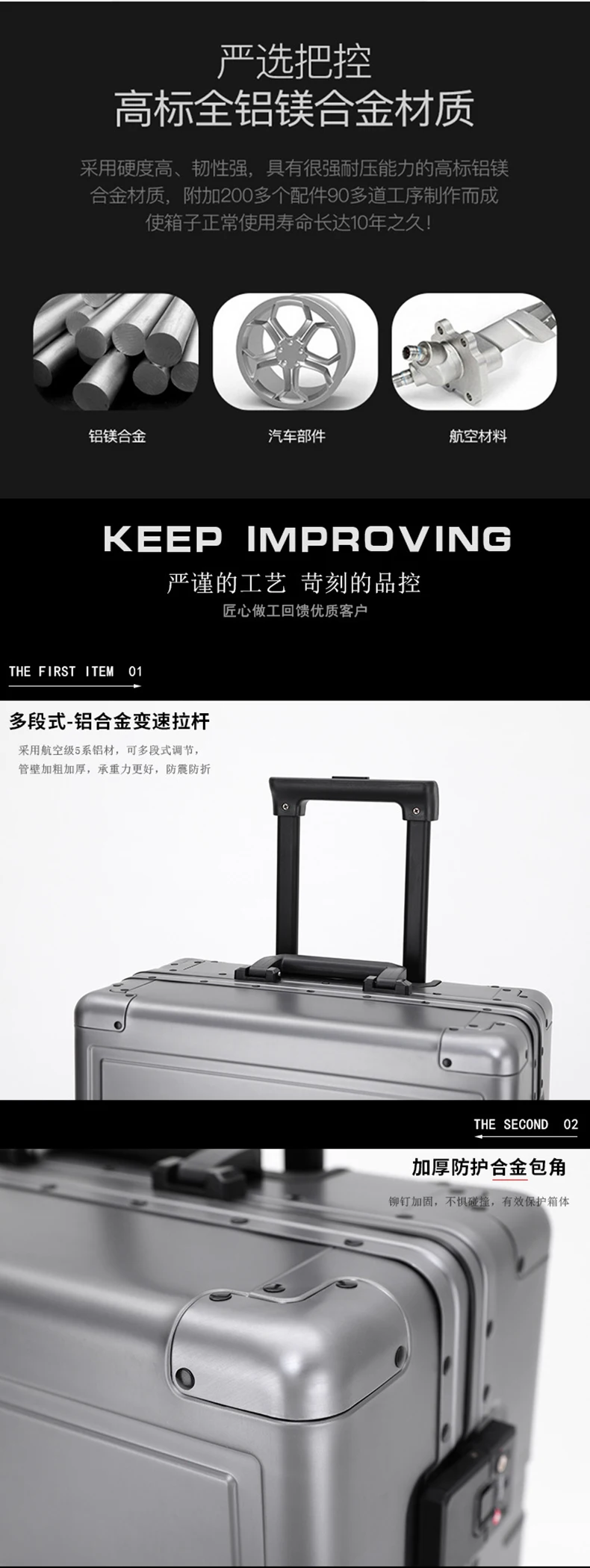 k621 Carry-on male student trolley suitcase box metal aluminum pull rod box female boarding case