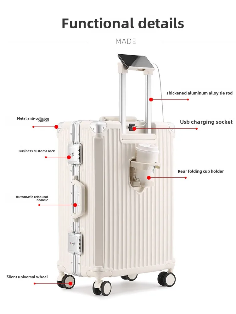 K626 Multifunctional New Aluminum Frame Suitcase Carry-On Luggage Anti-Drop Trolley Case