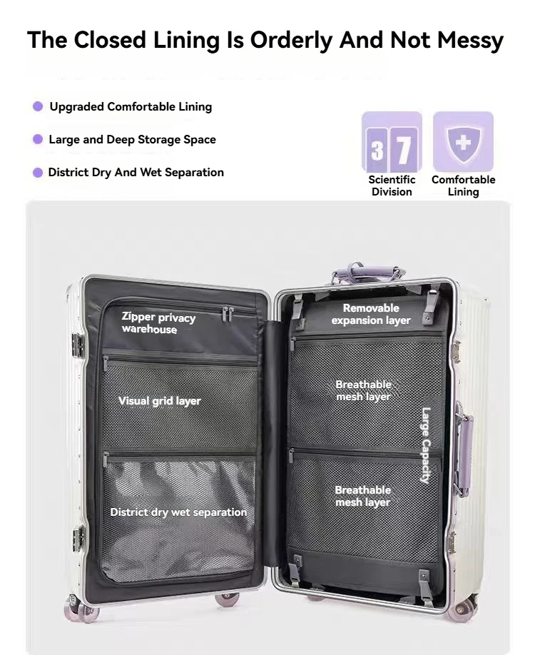 K632 New Aluminum Business Carry On TSA Lock Silent Wheels Large Capacity Suitcase