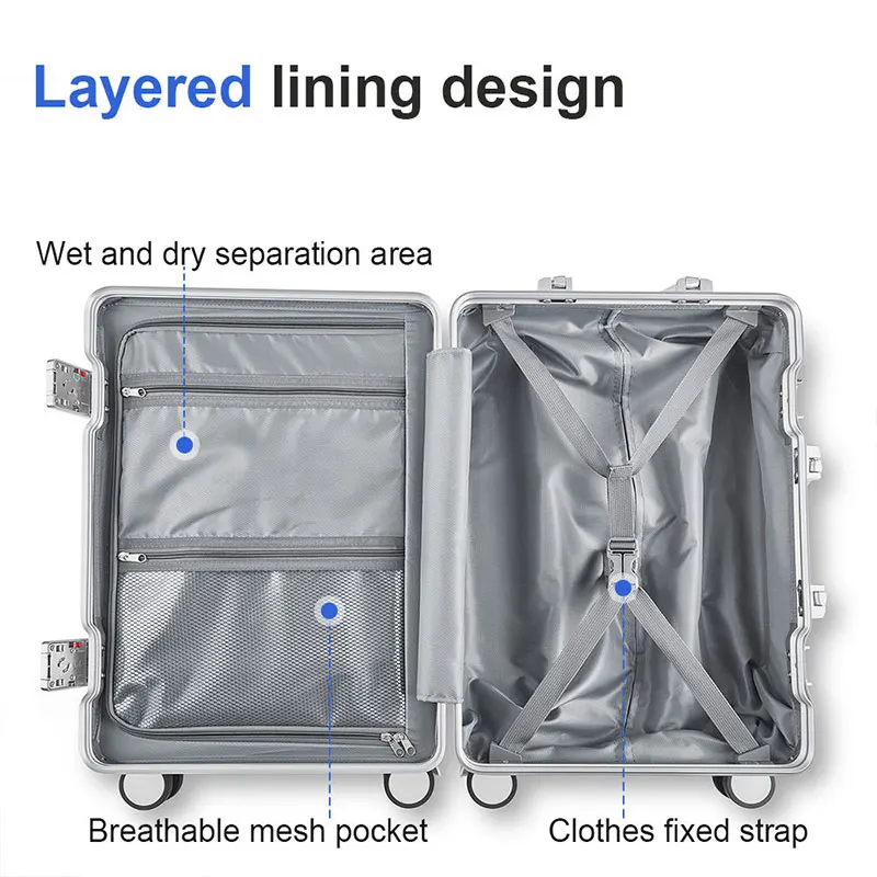 K638 Aluminium Magnesium Alloy TSA Code Trolley Case 20” Boarding Box Hard Business Luggage