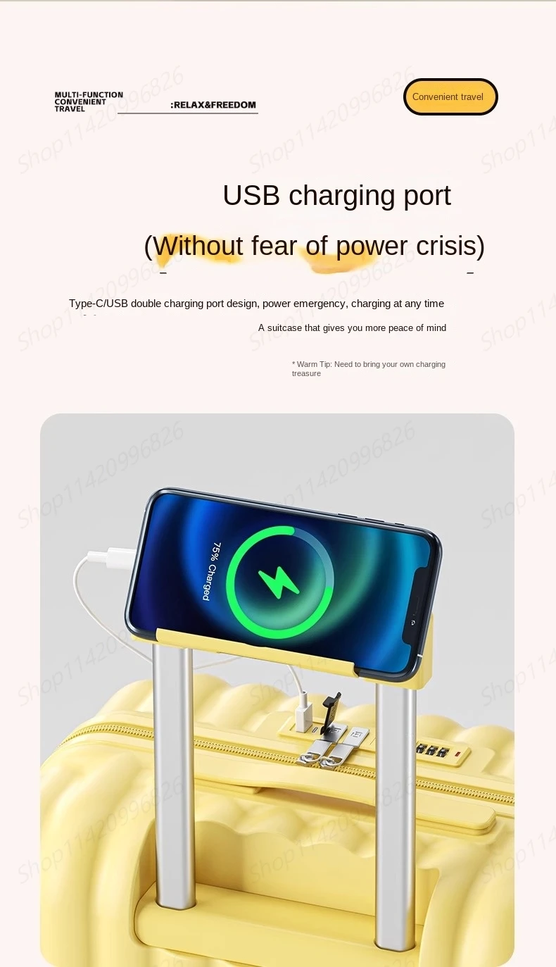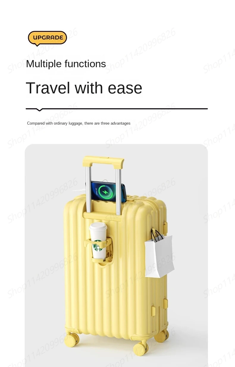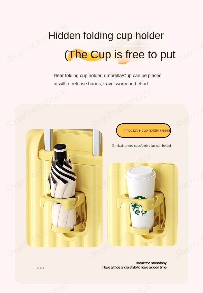 K643 Luggage Travel Female Mute Universal Wheel with USB Folding Cup Holder Trolley Case