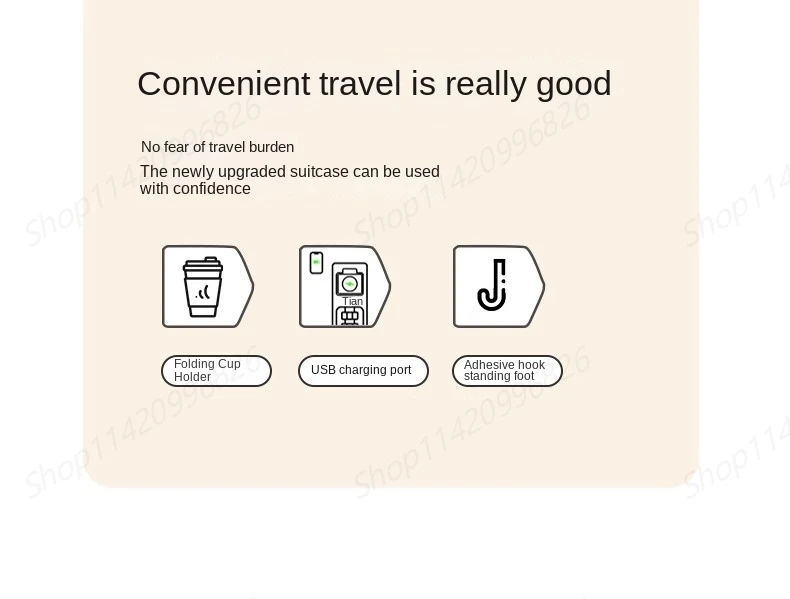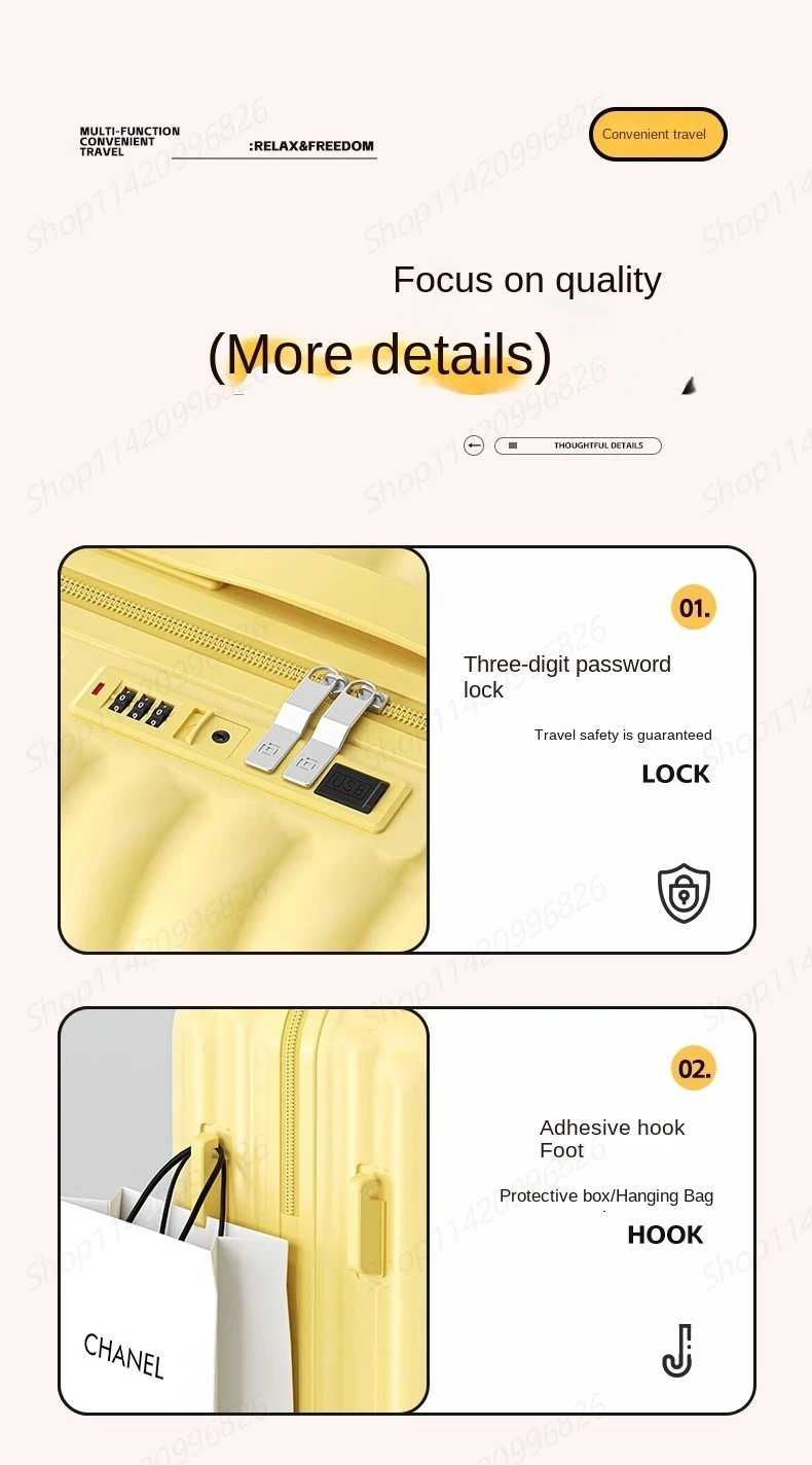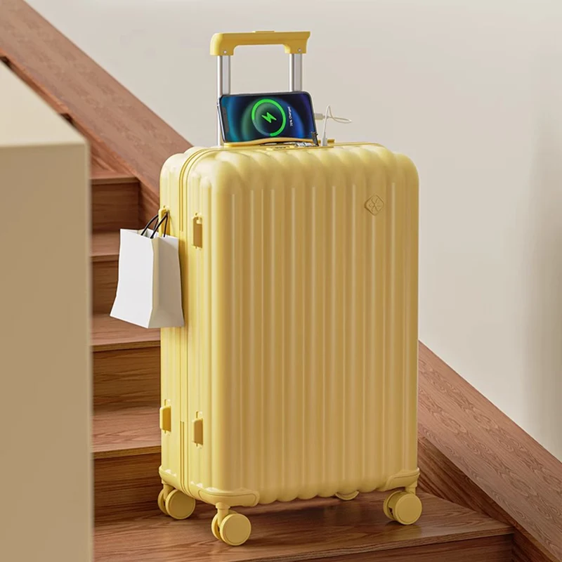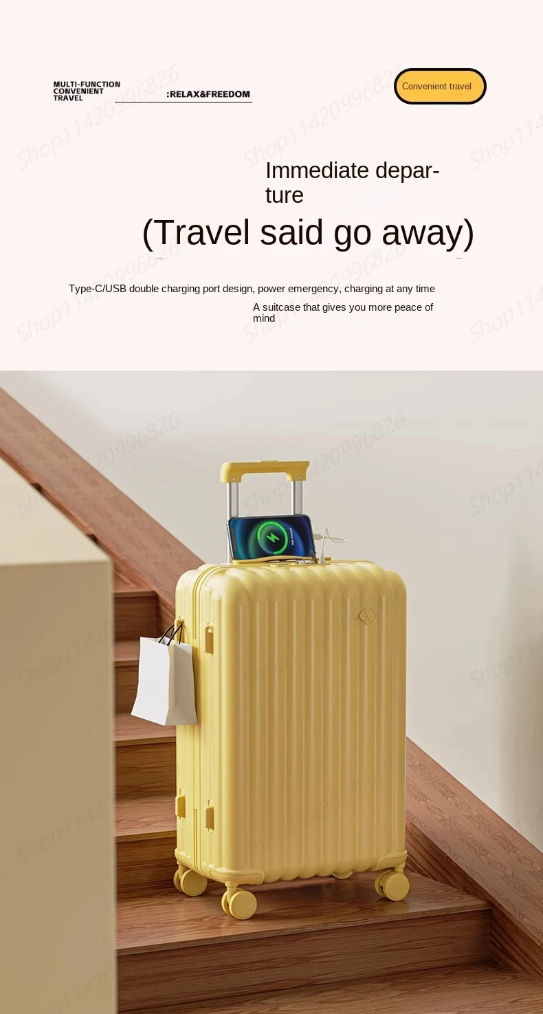 K643 Luggage Travel Female Mute Universal Wheel with USB Folding Cup Holder Trolley Case