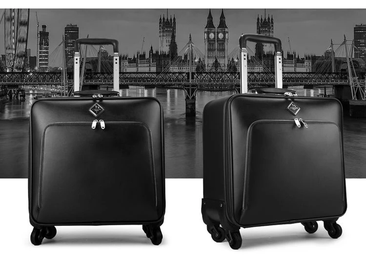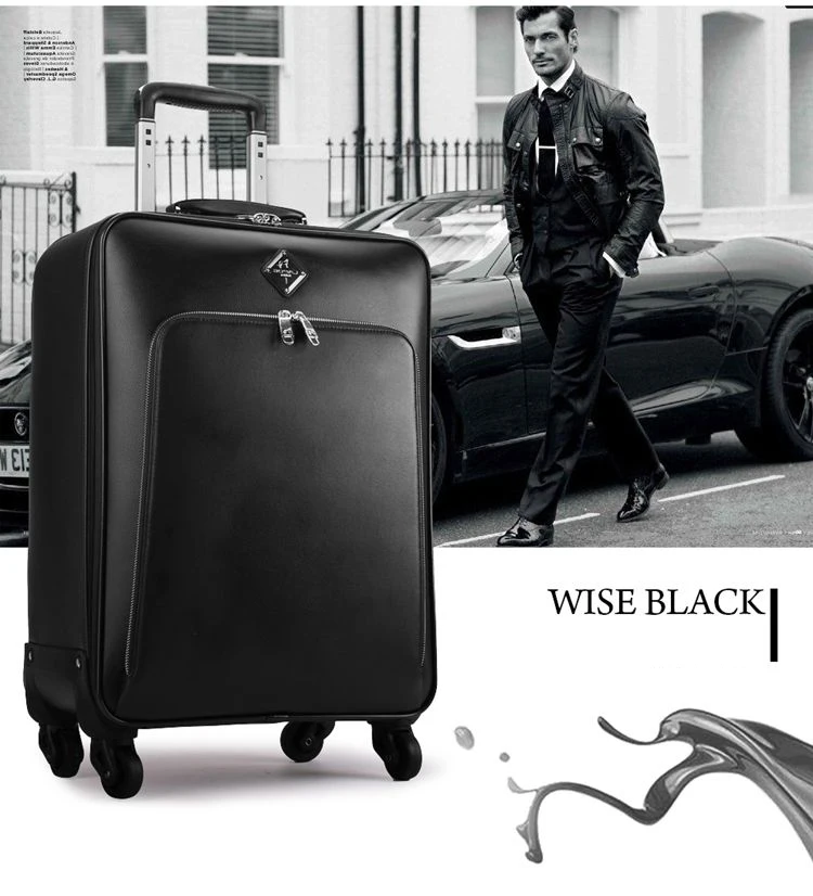 K651 Business brand genuine leather handbag rolling luggage bag on wheels cabin travel bag trolley suitcase