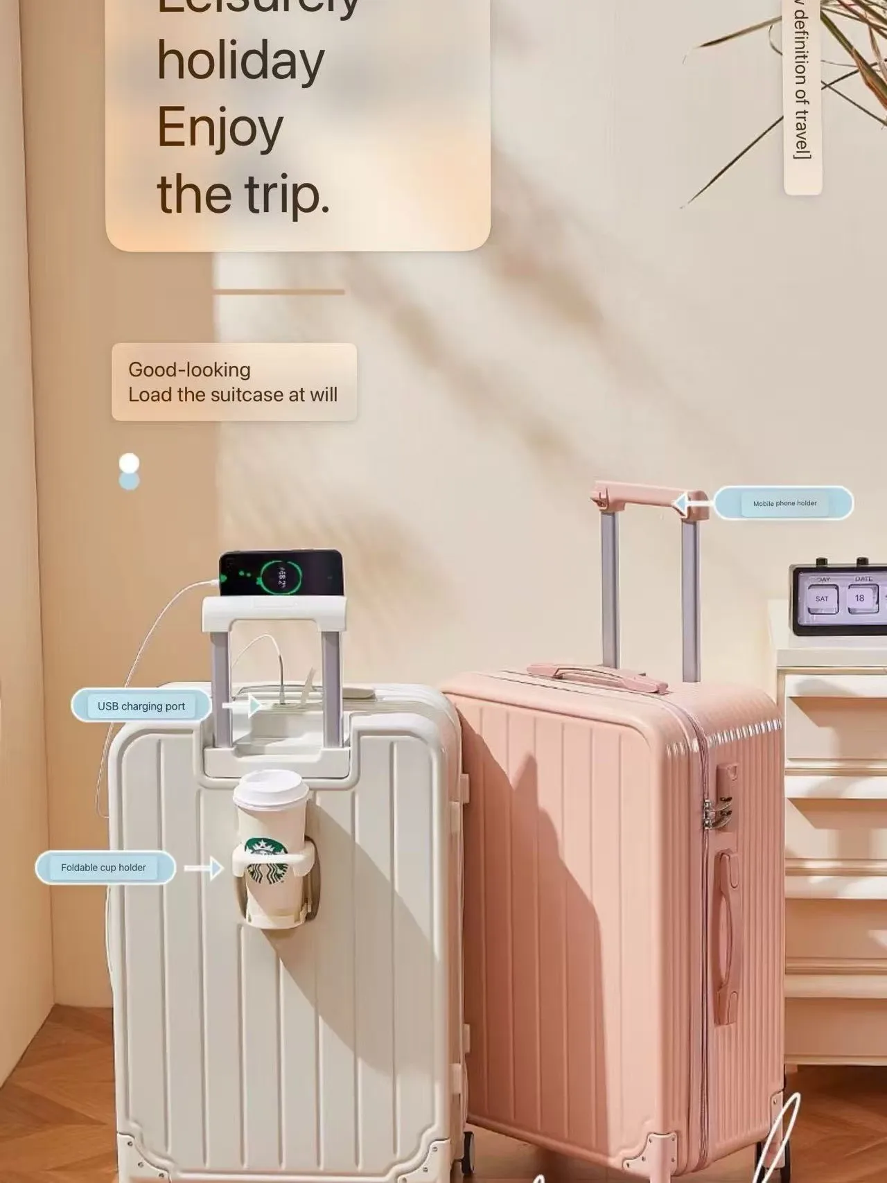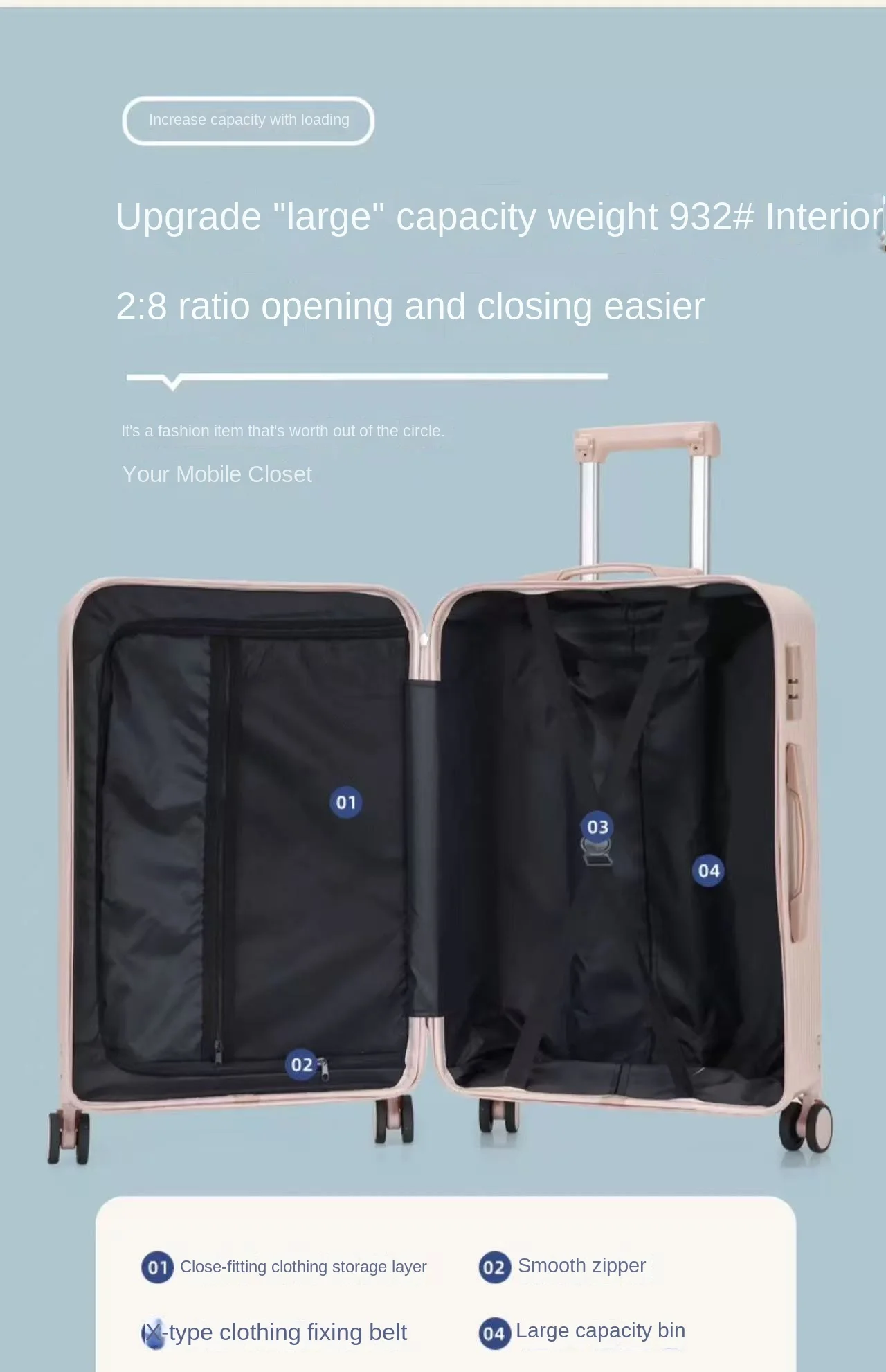 K664 Carry On Suitcase Large Capacity Travel Bag Women Students Vacation Business Trip TSA Lock