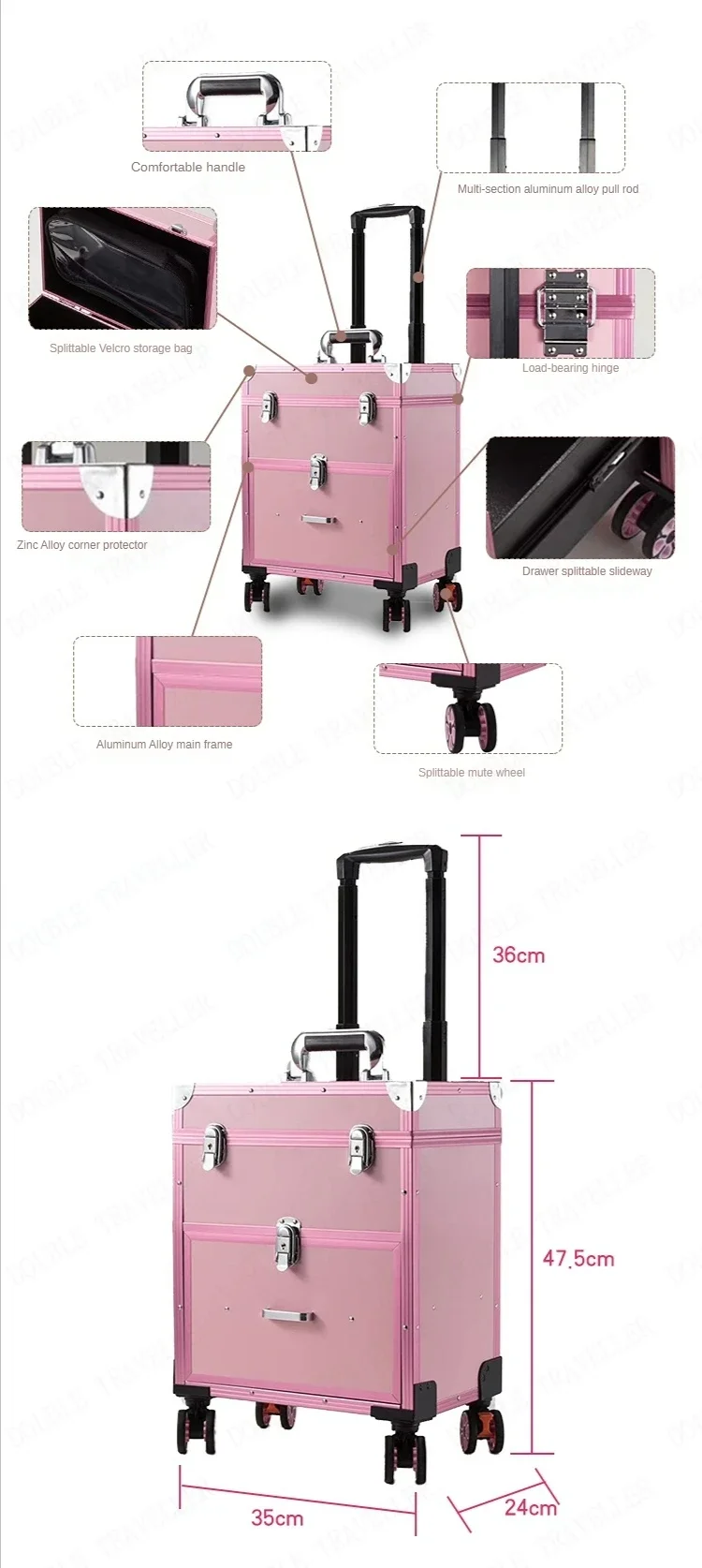 K693 Travel Beauty Cosmetics Organizer Luggage Box ABS+PC Professional Makeup Suitcase