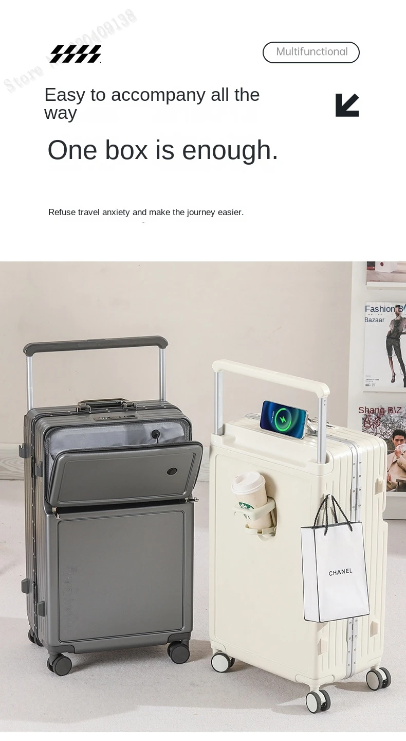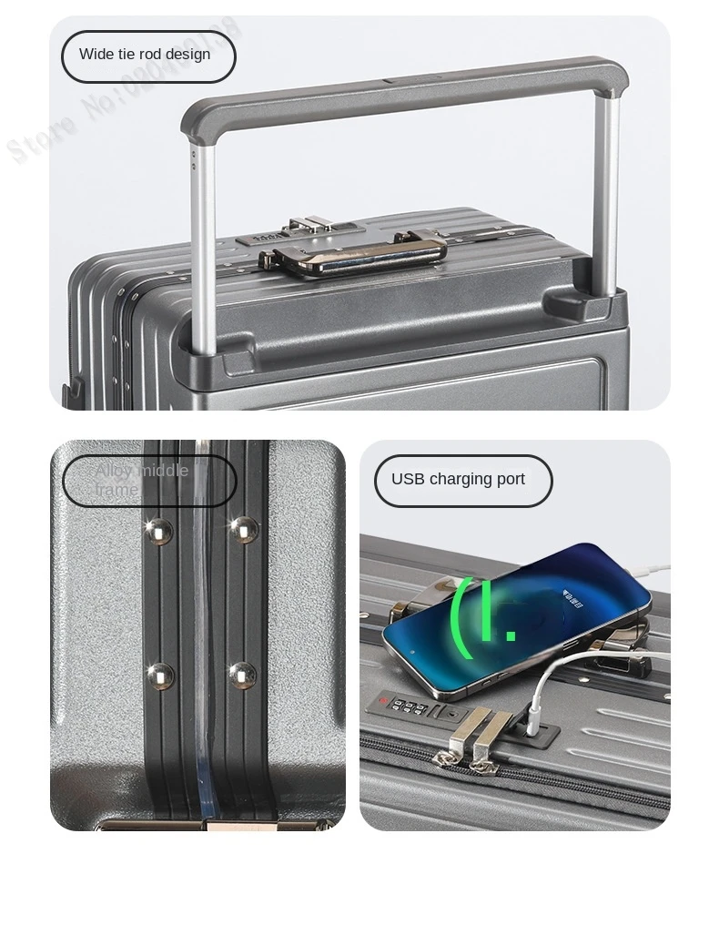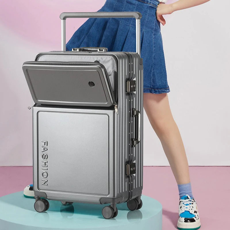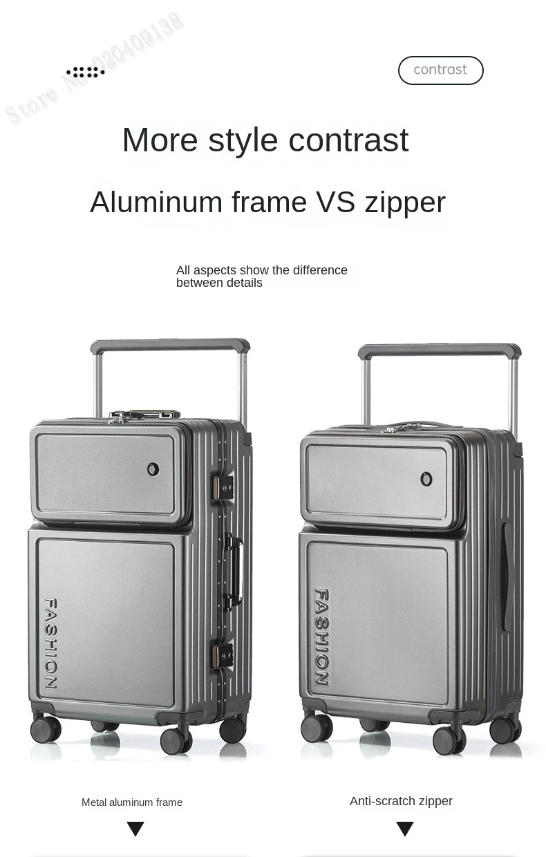 K717 New Luggage Aluminium Frame Wide Trolley Suitcase