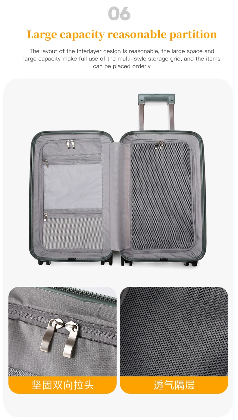 K730 Carry on LuggageOpening and Double Handles, Silent Universal Wheels