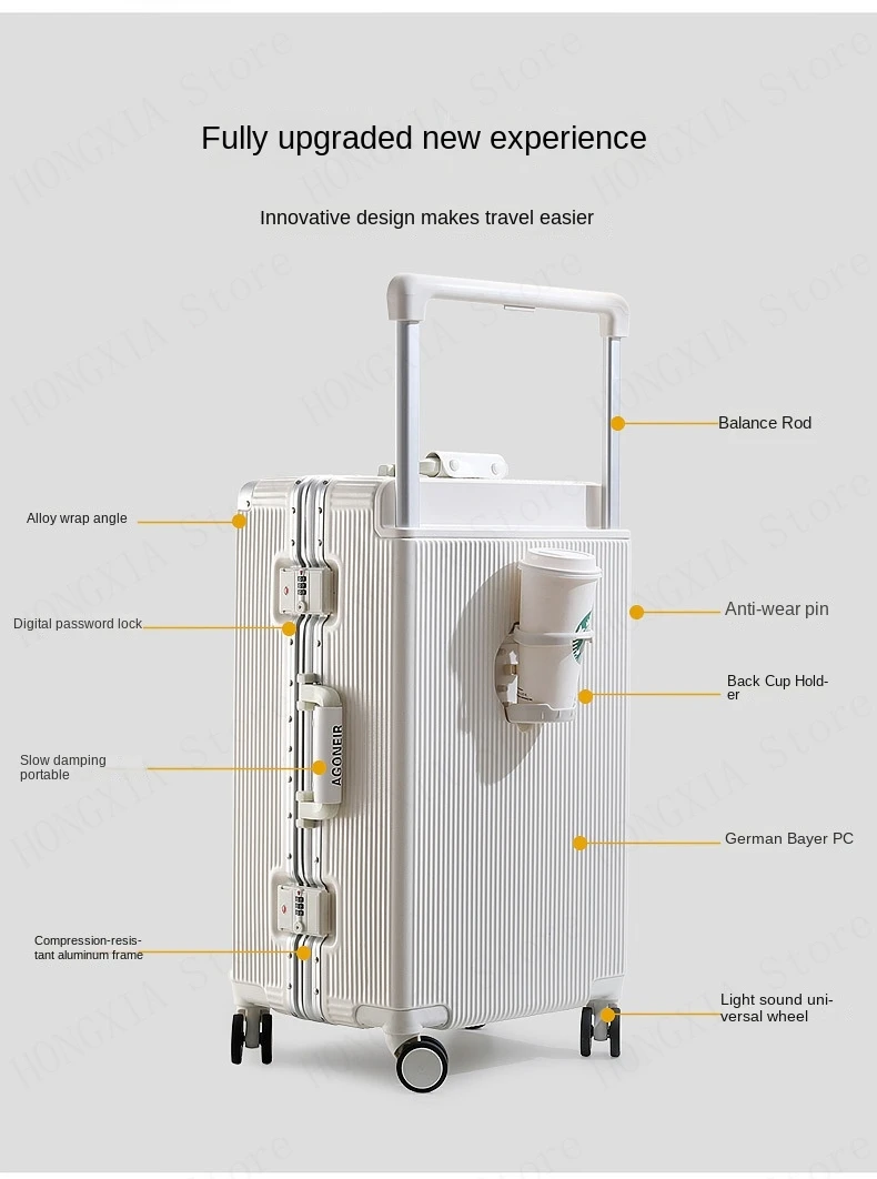 K742 Carry On Luggage Cup Holder 20″ 26″ Aluminum Frame Suitcase Men and Women Password Trolley Case Suitcase Trip Cabin
