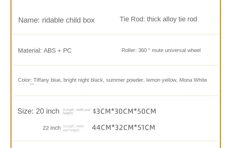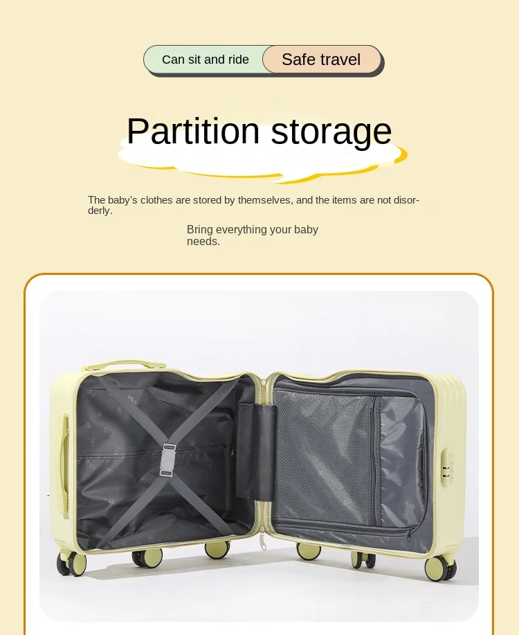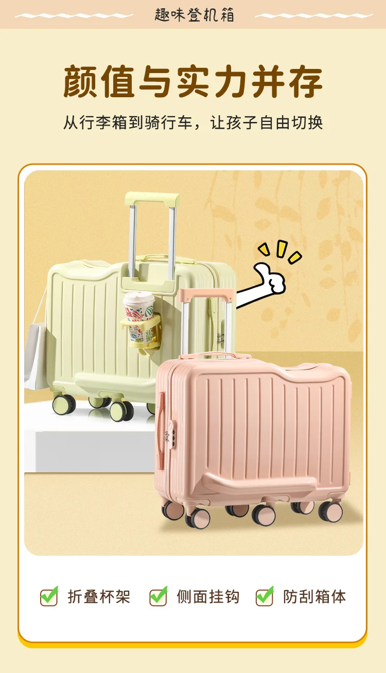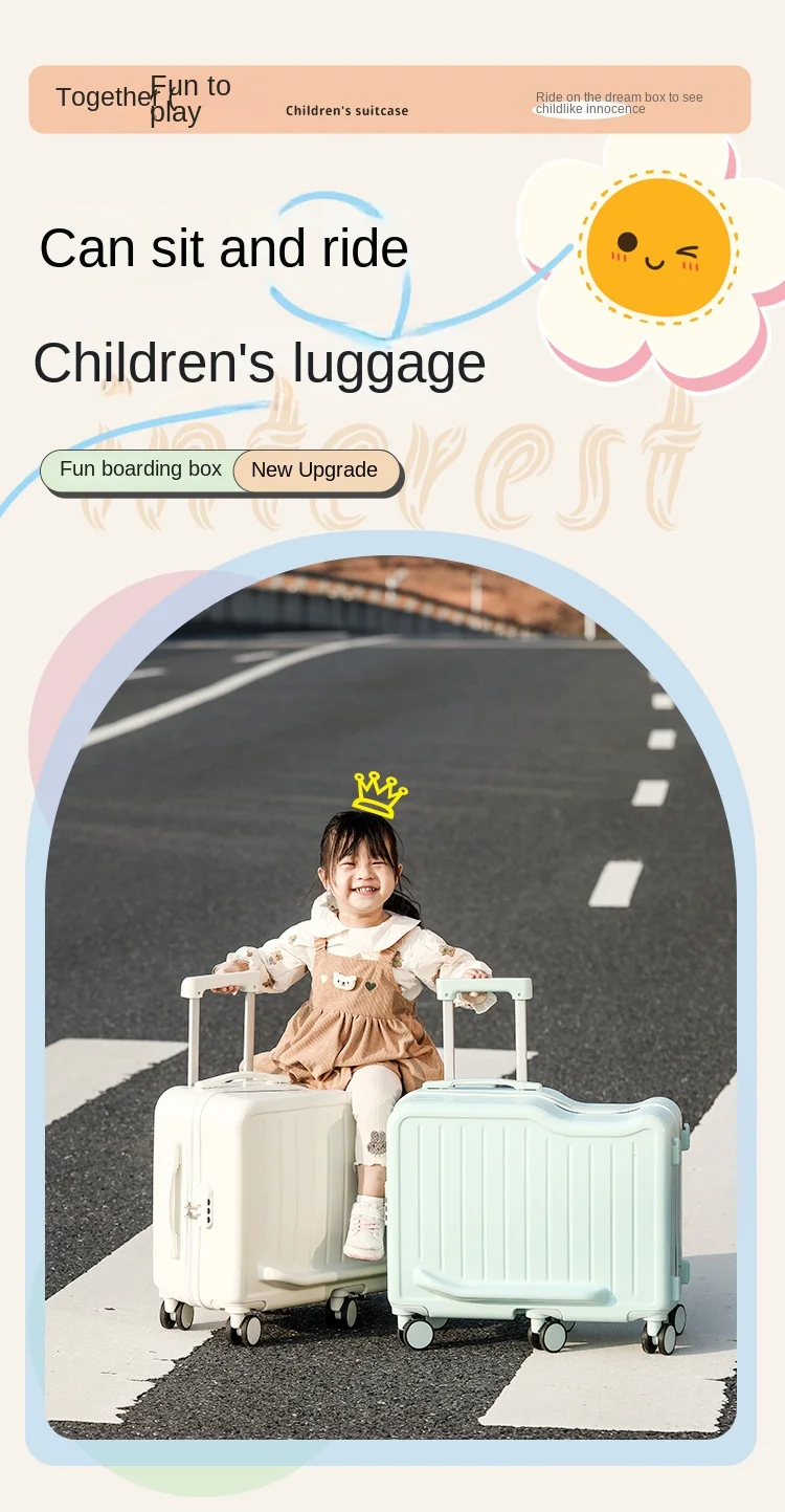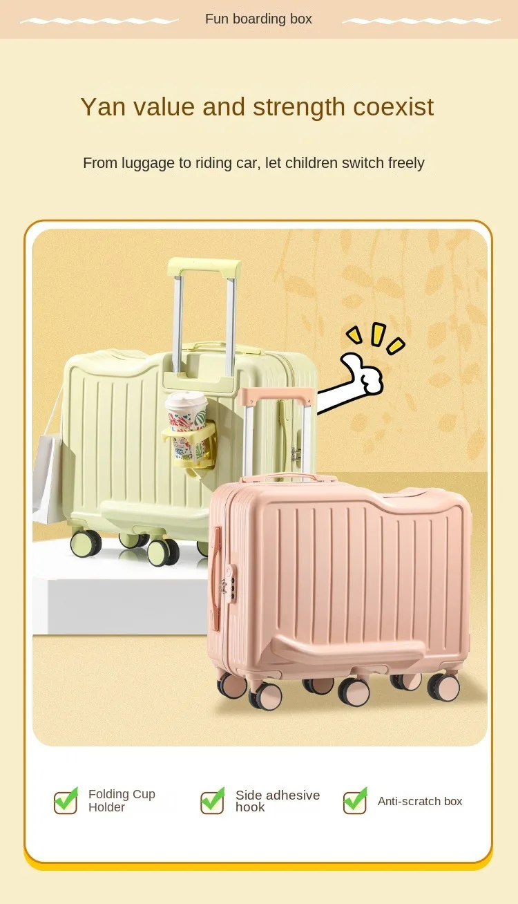 K817 New Children’s Riding Suitcase 20/22 Inch Can Sit Luggage Trolley Case