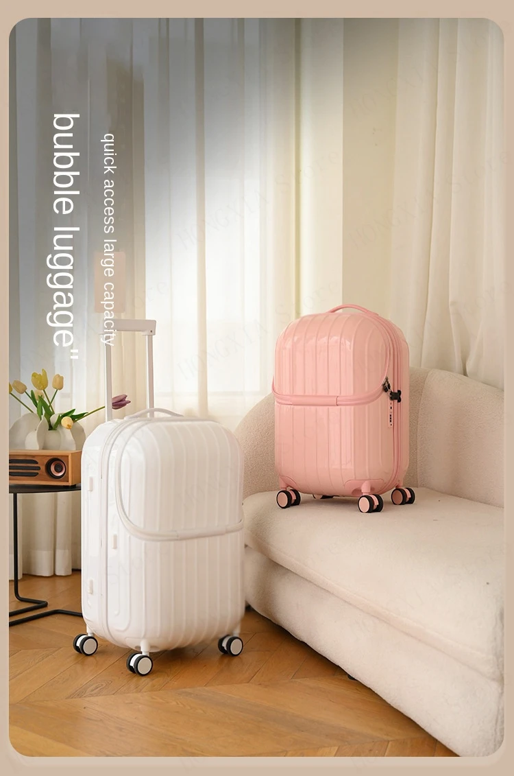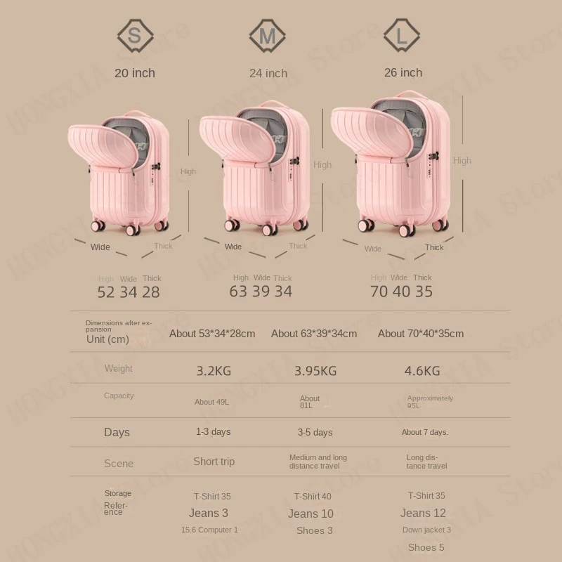 K860 Front Opening Carry on Luggage with Cup Holder Multifunction Suitcase