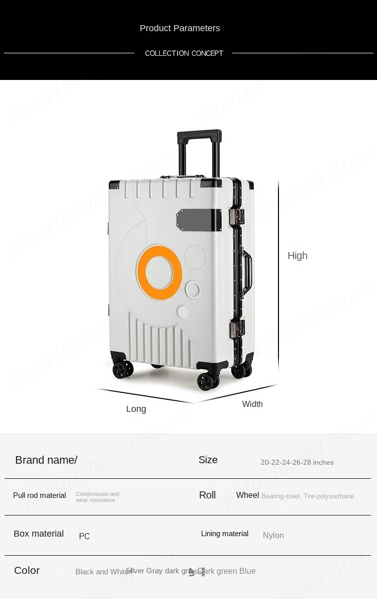 K862 New Suitcase Aluminum Frame Men Fashion Carry on Luggage