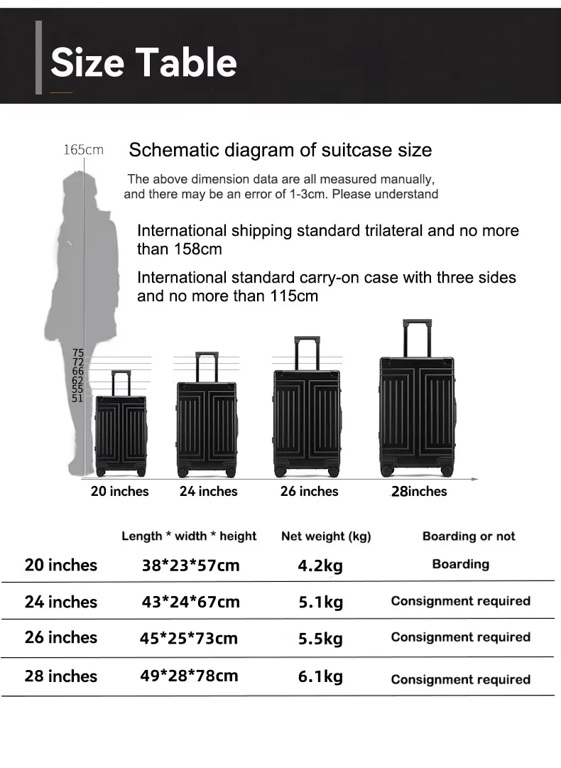 K863 Aluminum-magnesium Alloy Travel Suitcase Rolling Luggage