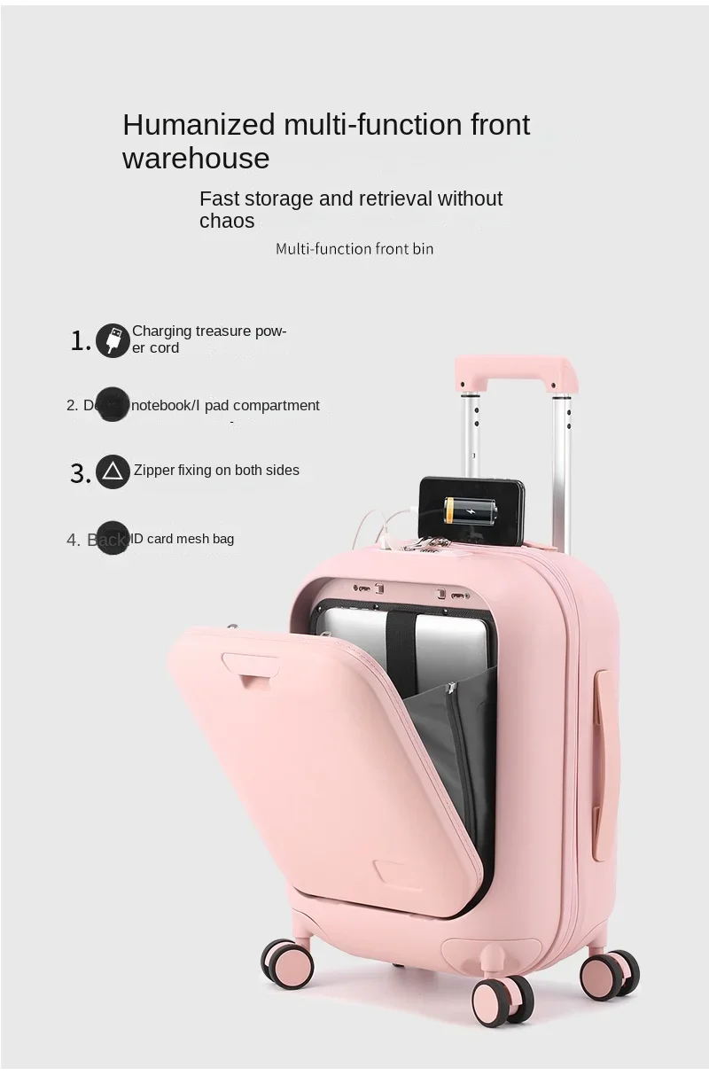 K884 Luggage Suitcase Compartment Front Opening 18 20 24 Inch Boarding Trolley Box