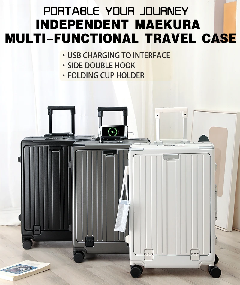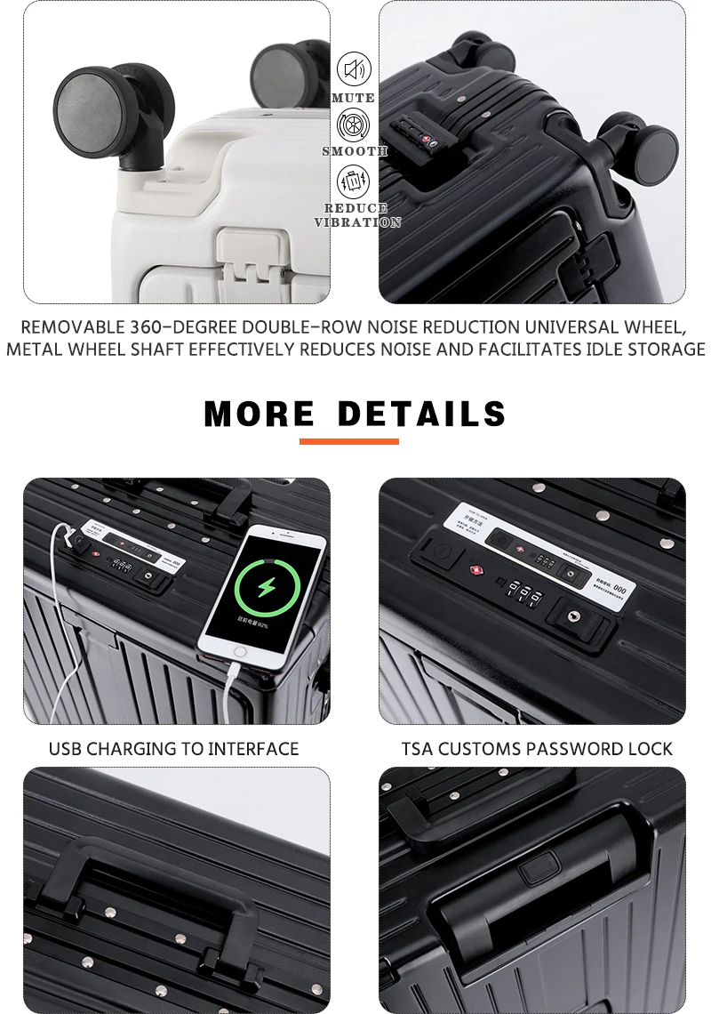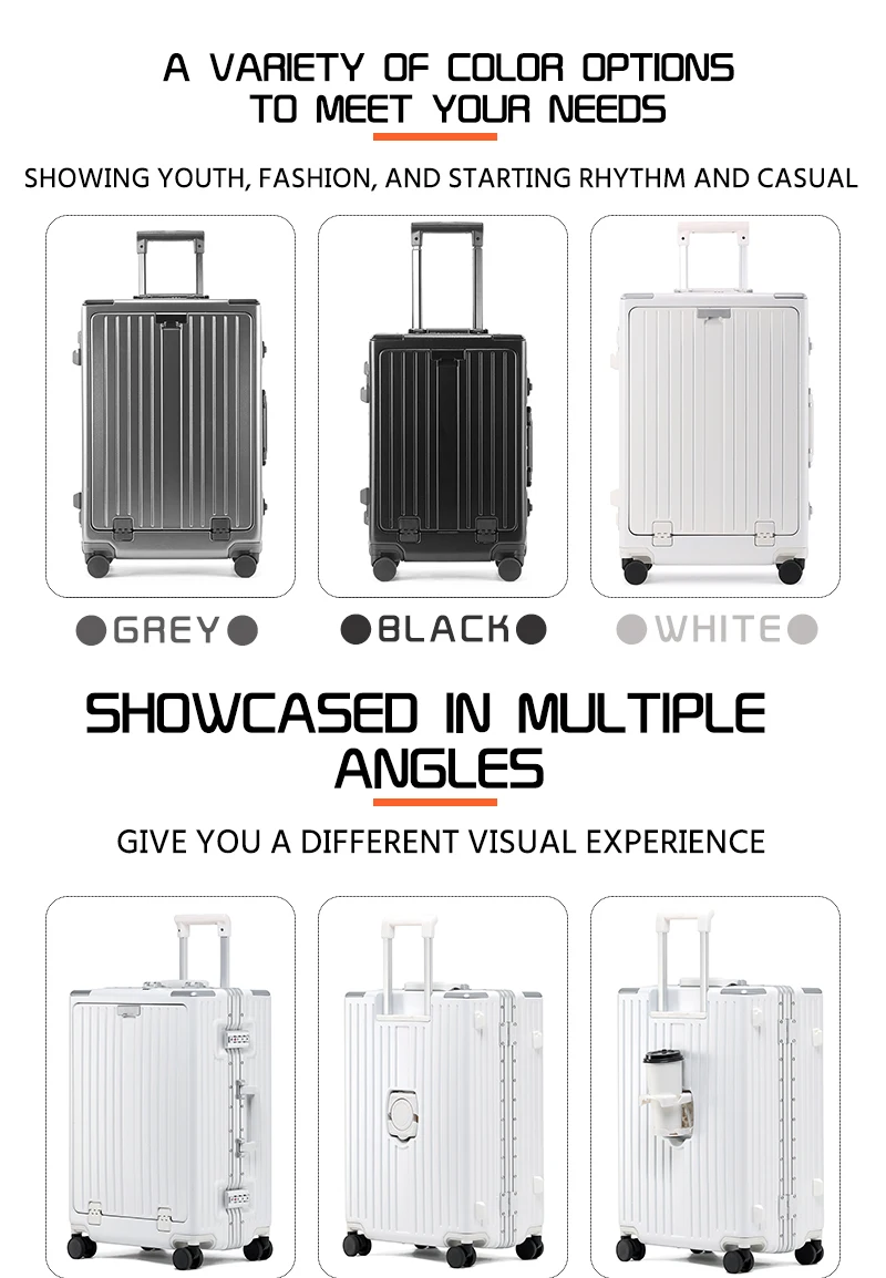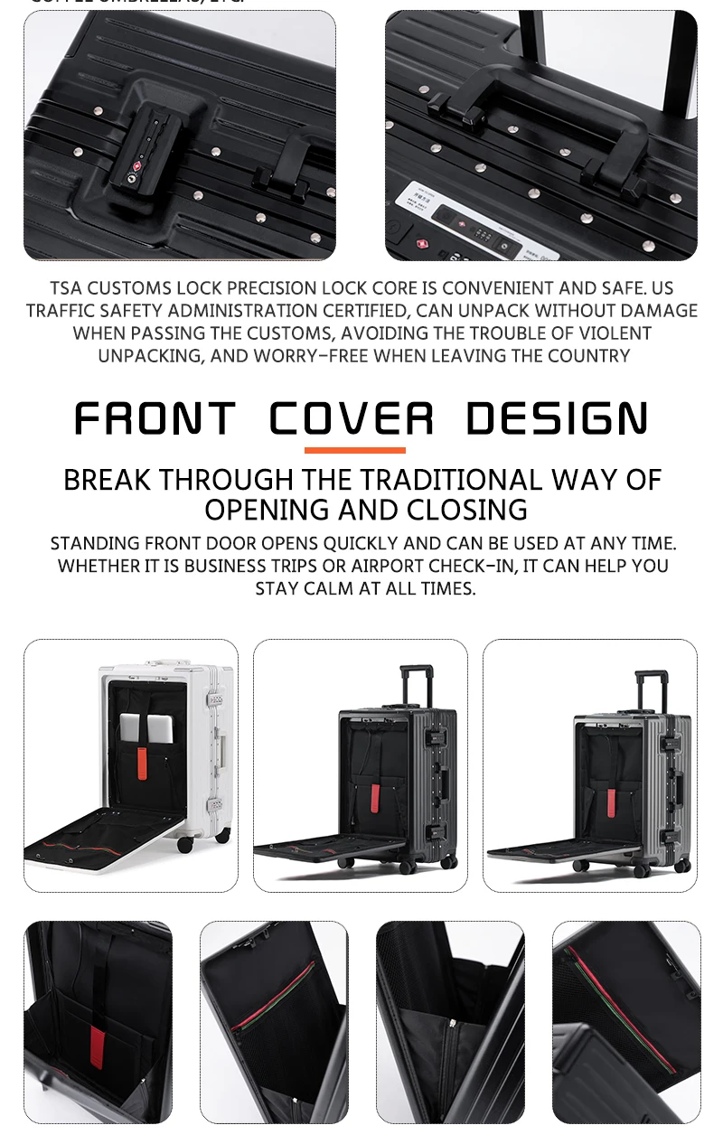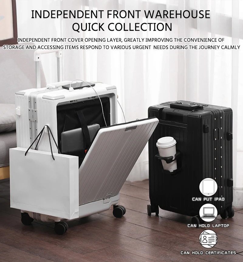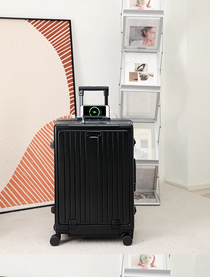 K913 Front opening aluminum frame suitcase multi-function luggage