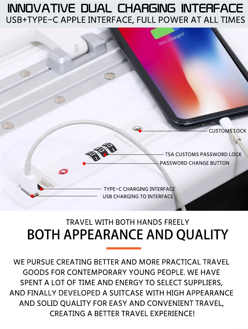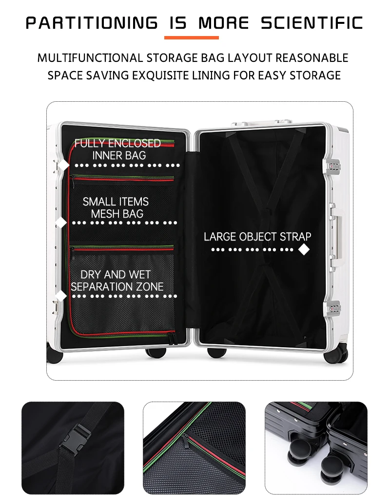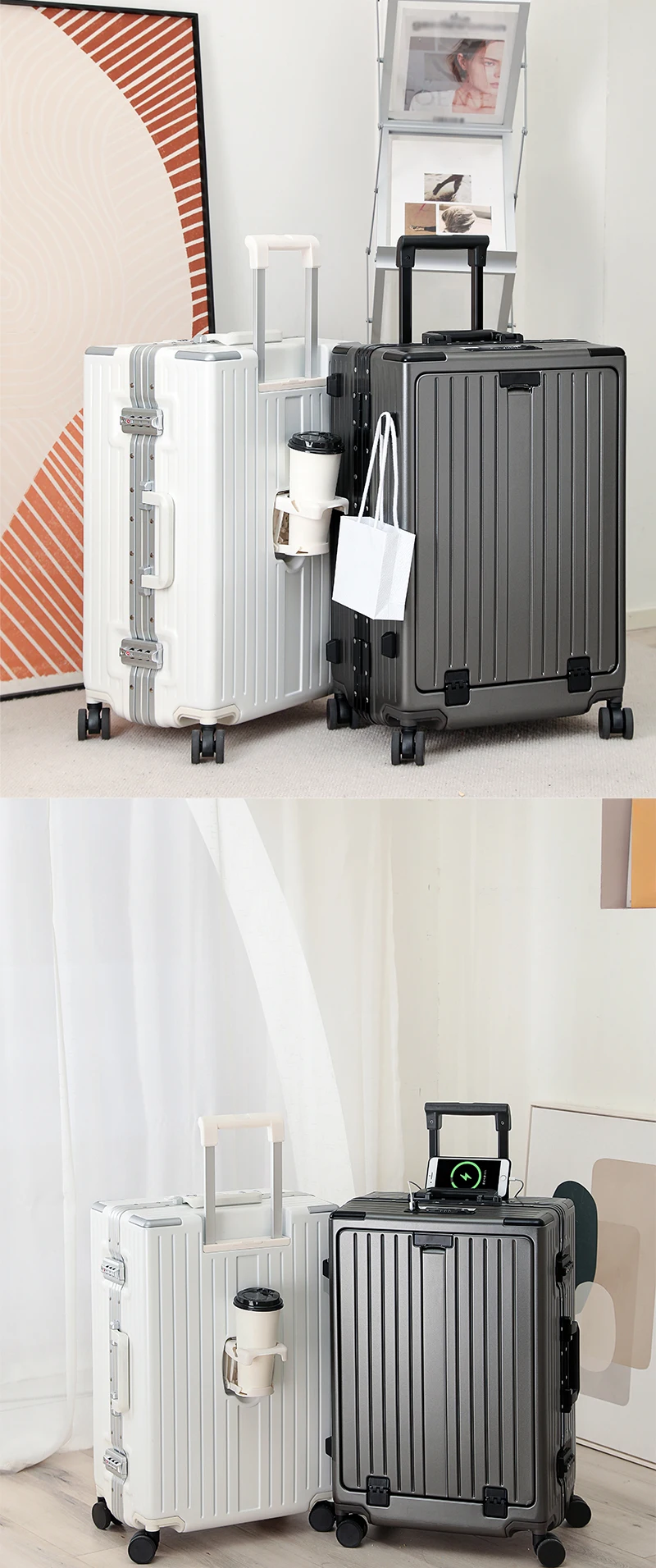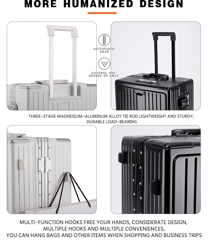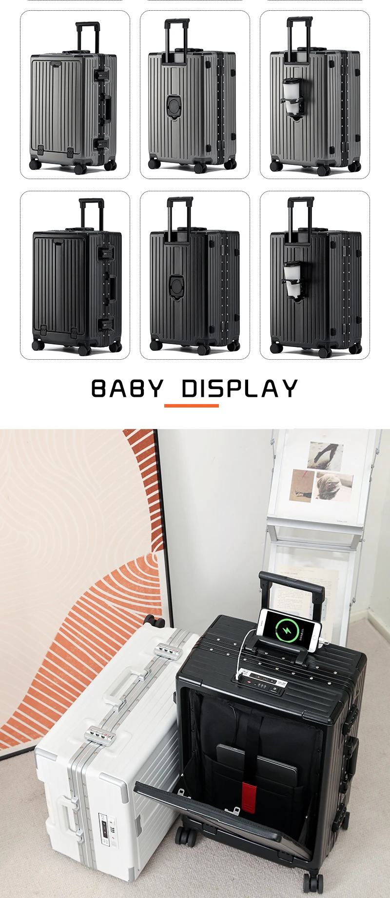 K913 Front opening aluminum frame suitcase multi-function luggage
