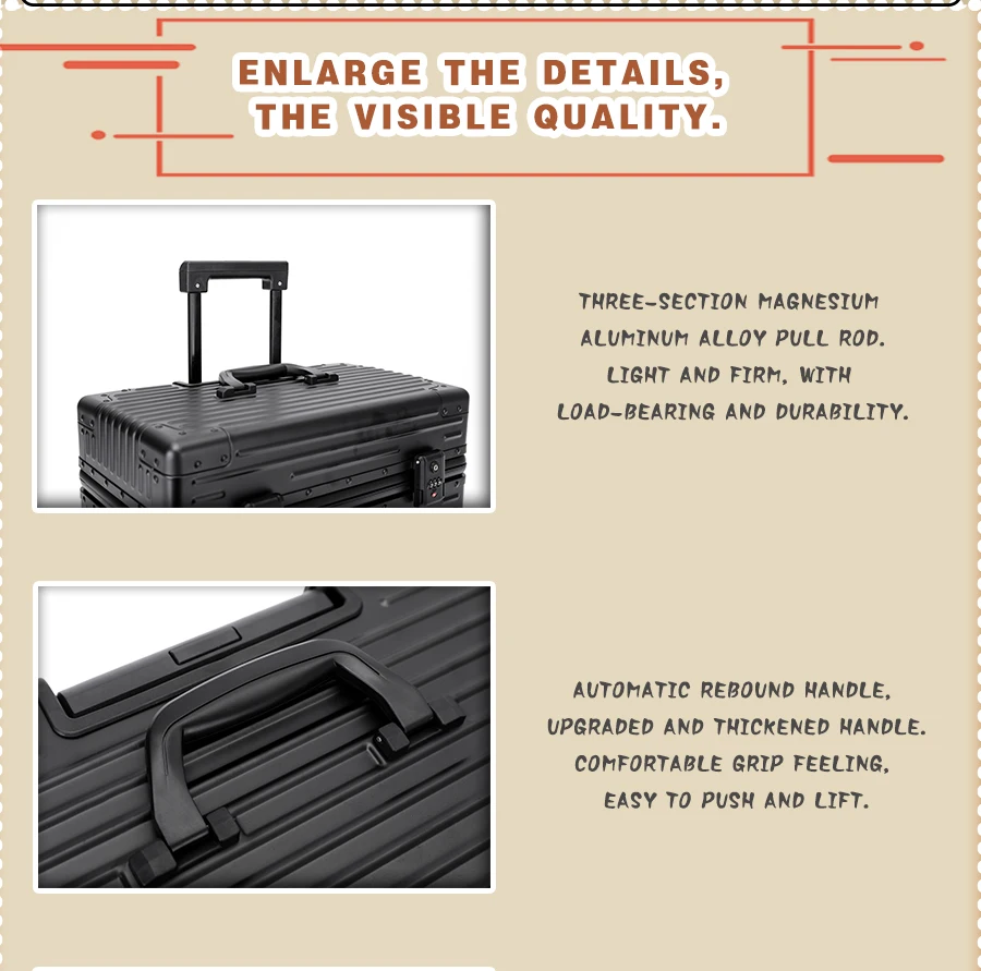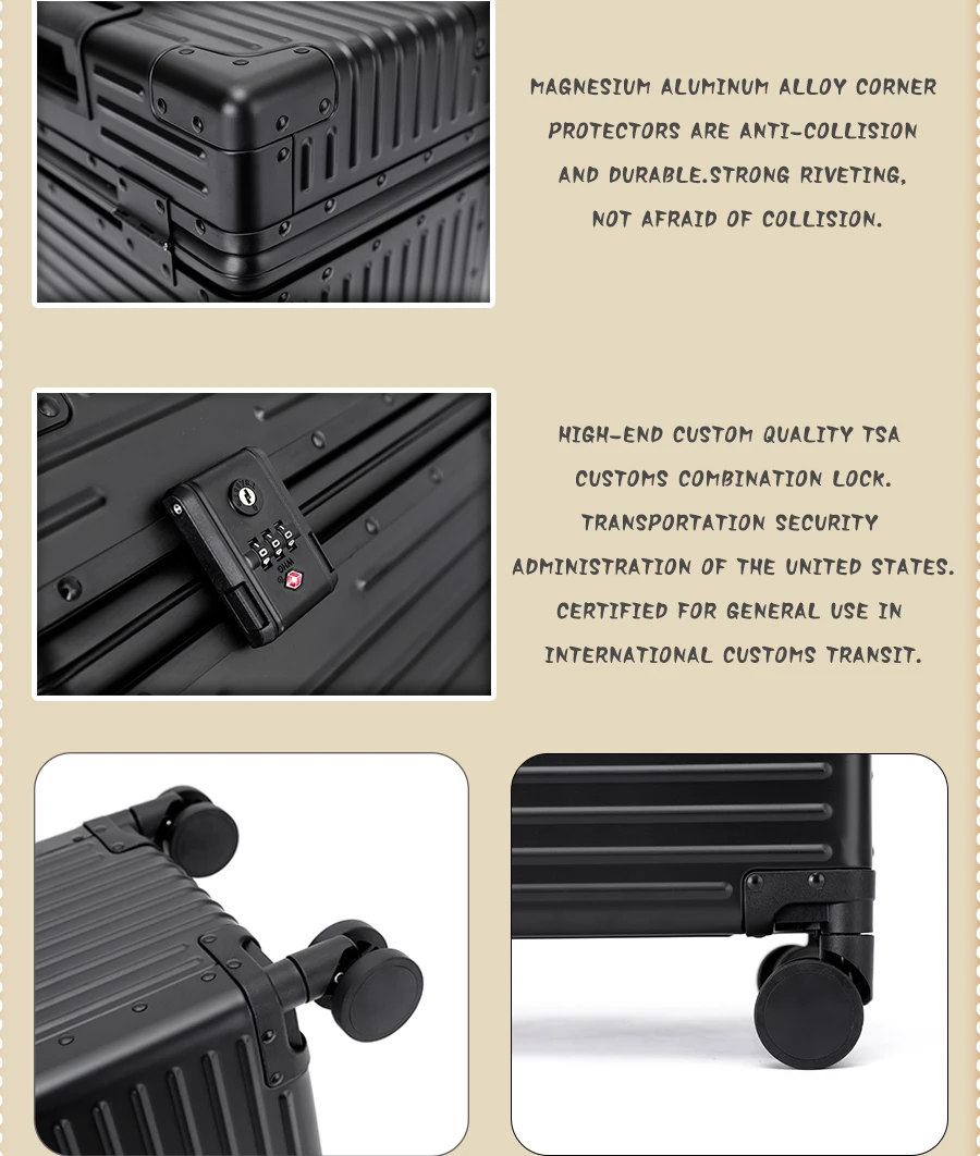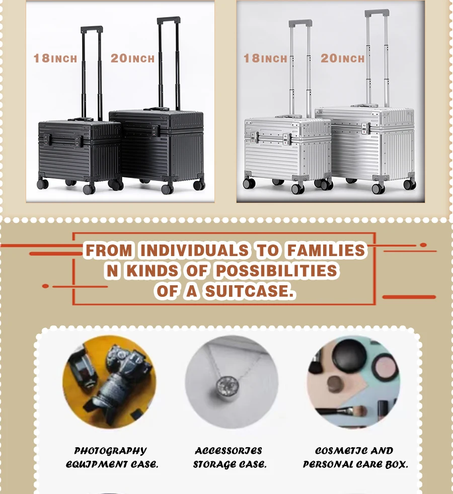 K929 Aluminum Alloy Frame Suitcase Top-Opening ABS Portable Trolley Case