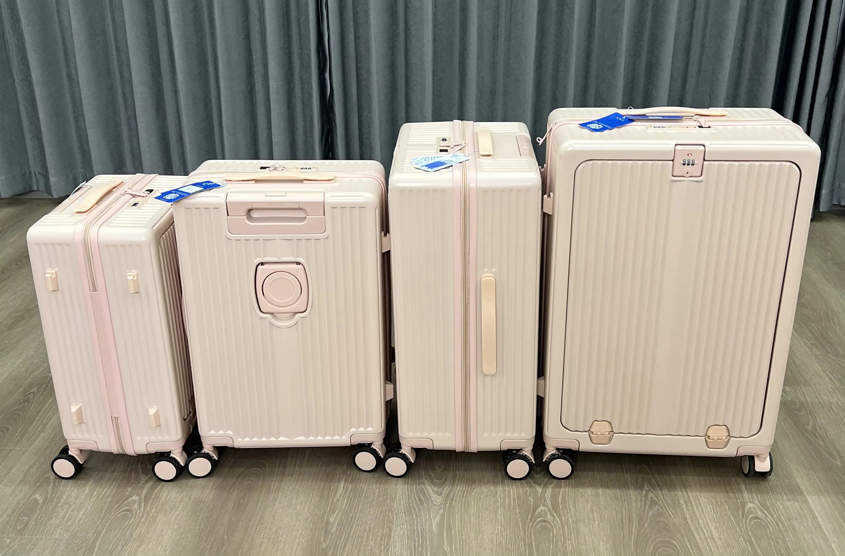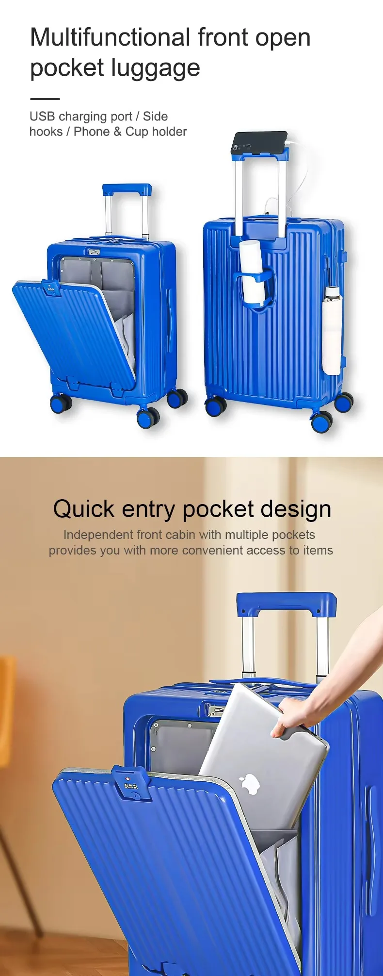 L360 Front Opening Suitcase with USB charging Plug Travel Rolling Luggage Aluminum Alloy Trolley Fashion PC Case with Spinner Wheel