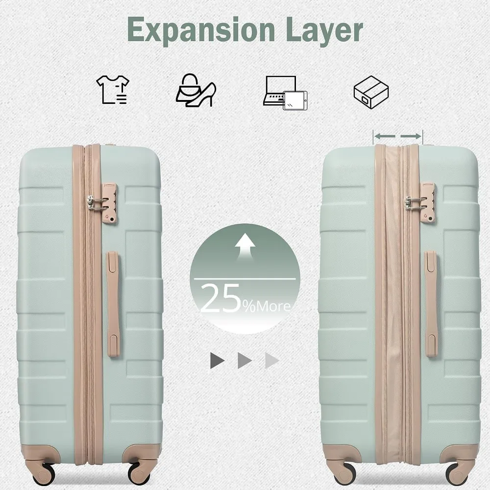 [25% Expendable Design] Both 24 and 28 inch luggage are expandable,adding 25% space capacity for hardshell luggage, it allow you to pack more items and compression keeps clothing neatly pressed.