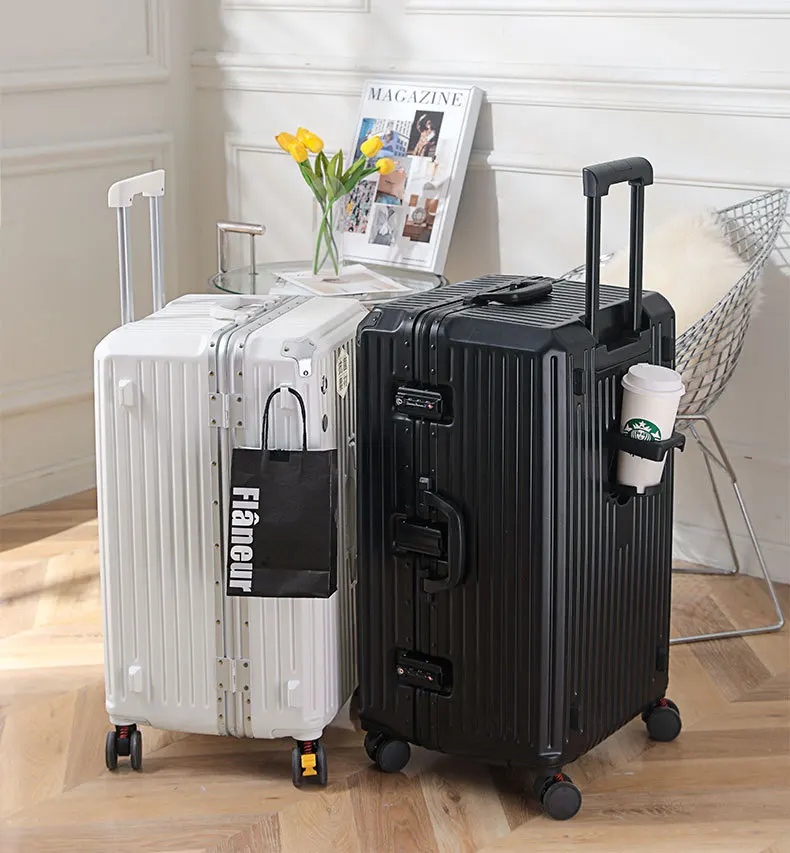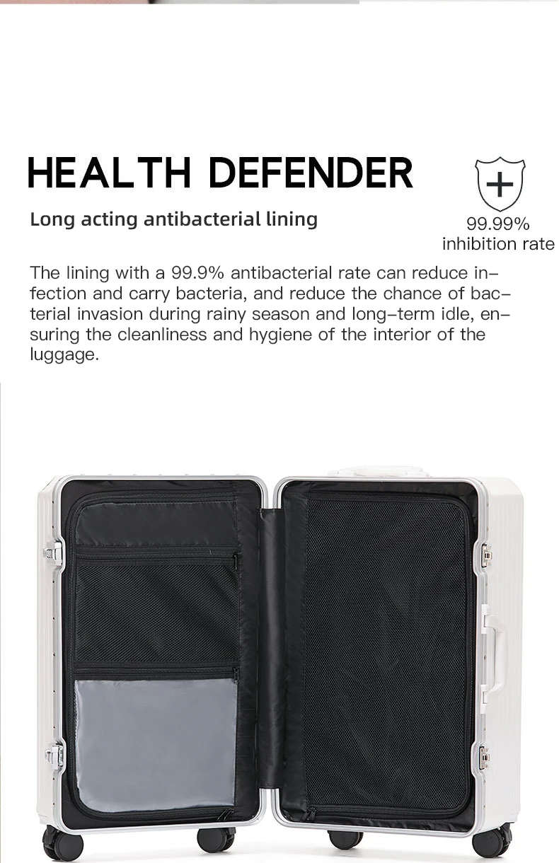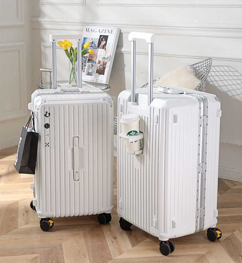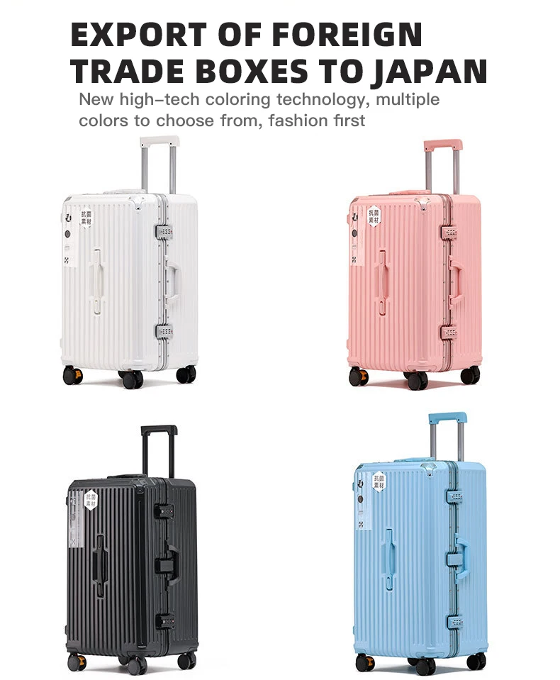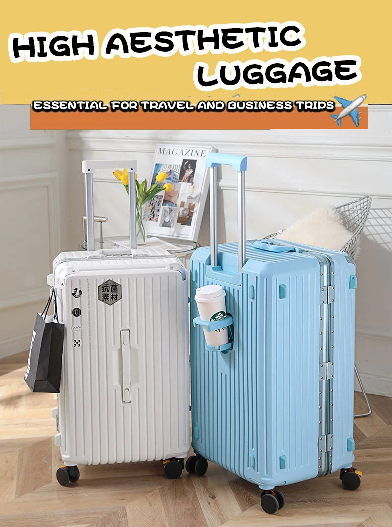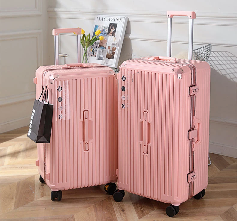 L406 sushimu Suitcase Wide Handle Travel Suitcase Men 20 24 26 Carry-On Luggage Women PC Aluminum Frame Trolley Case