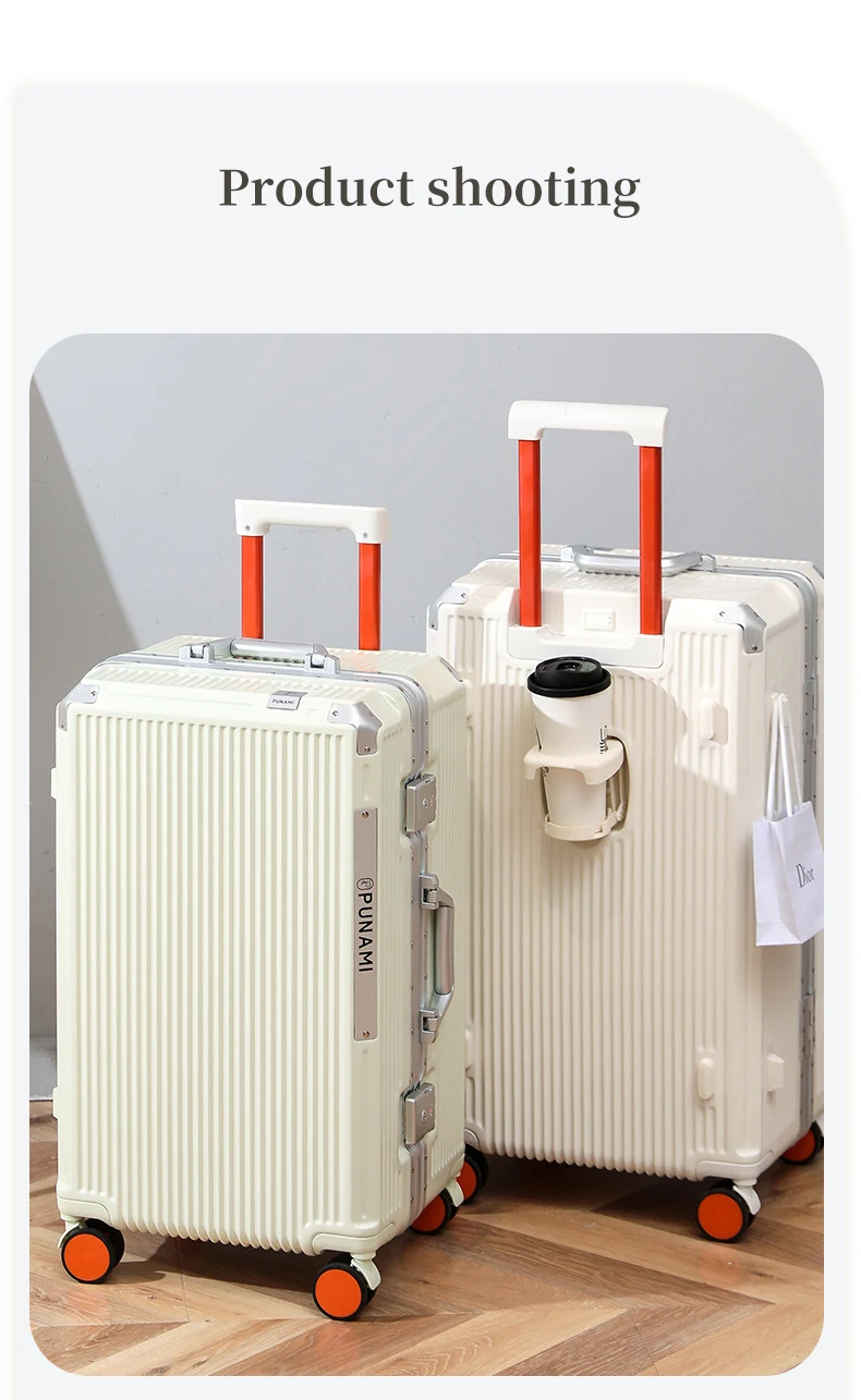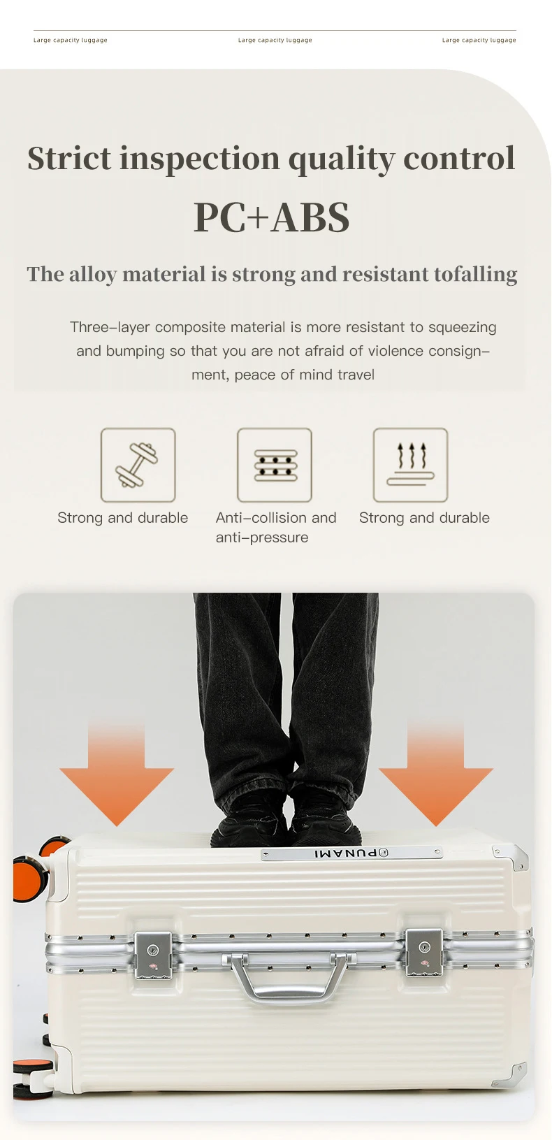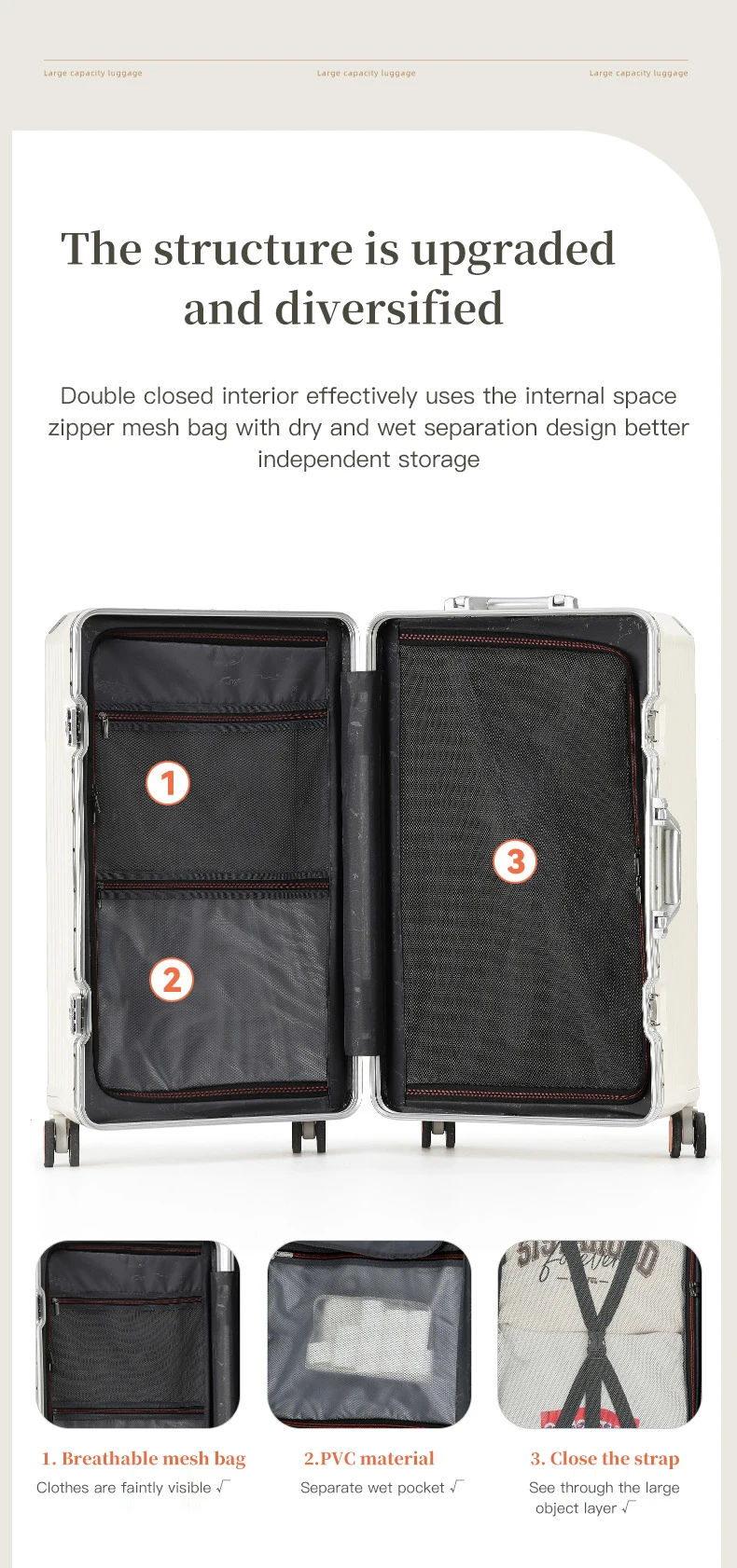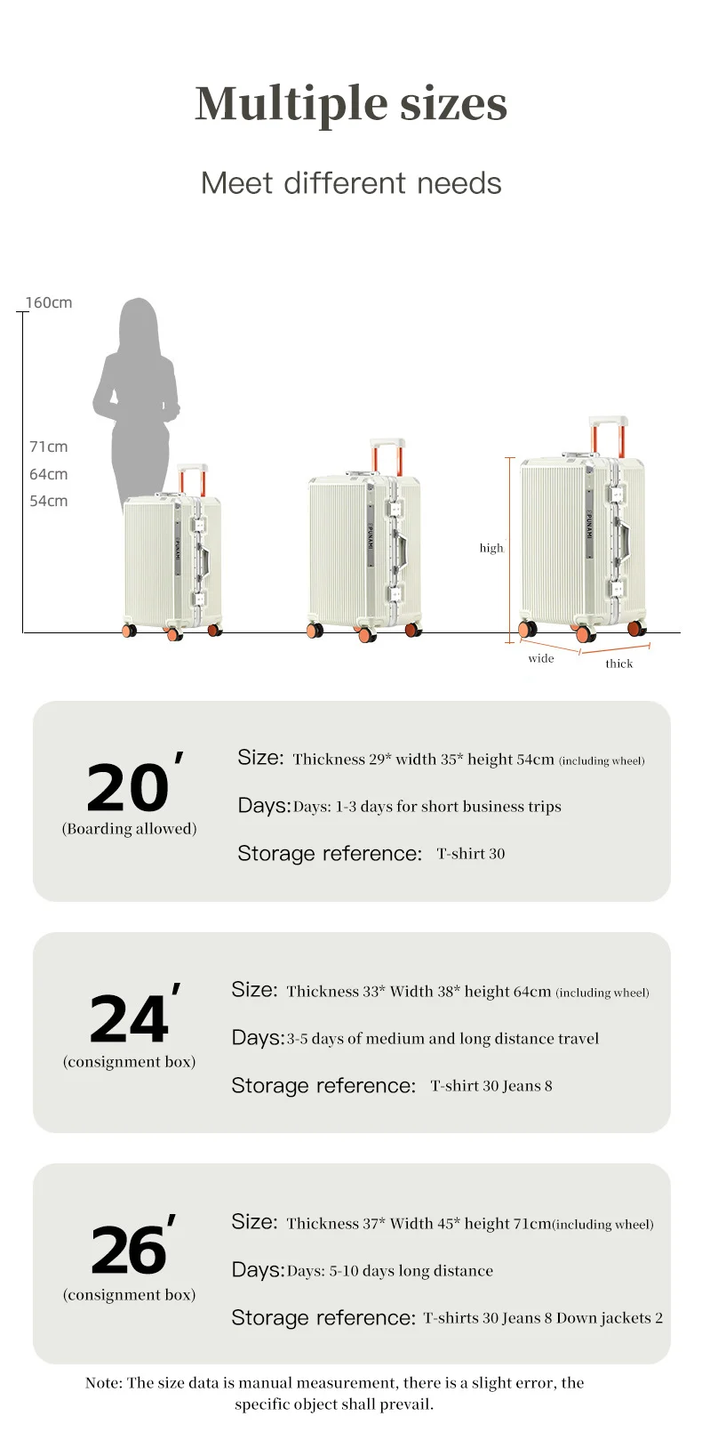 L416 Suitcase Wide Handle Travel Suitcase Men 20 24 26 Carry-On Luggage Women PC Aluminum Frame Trolley Case