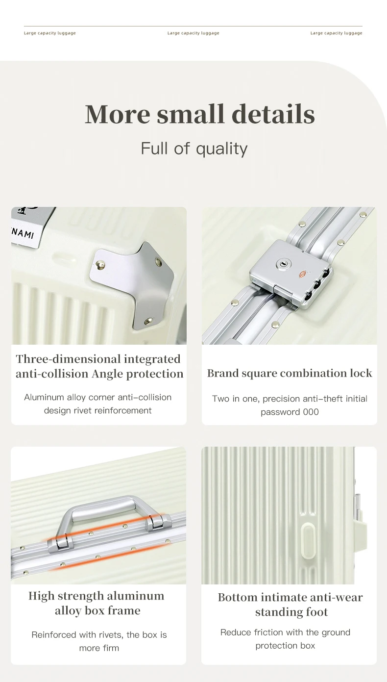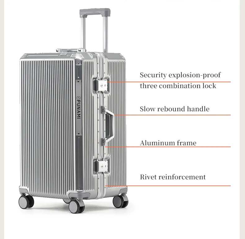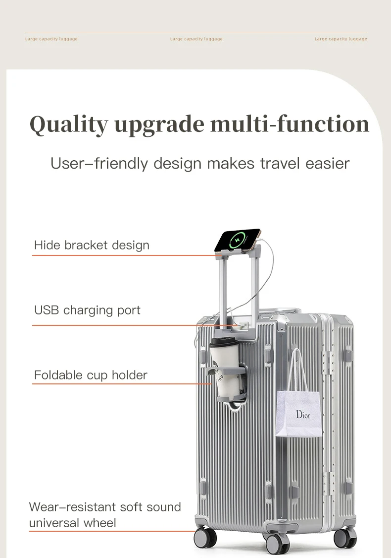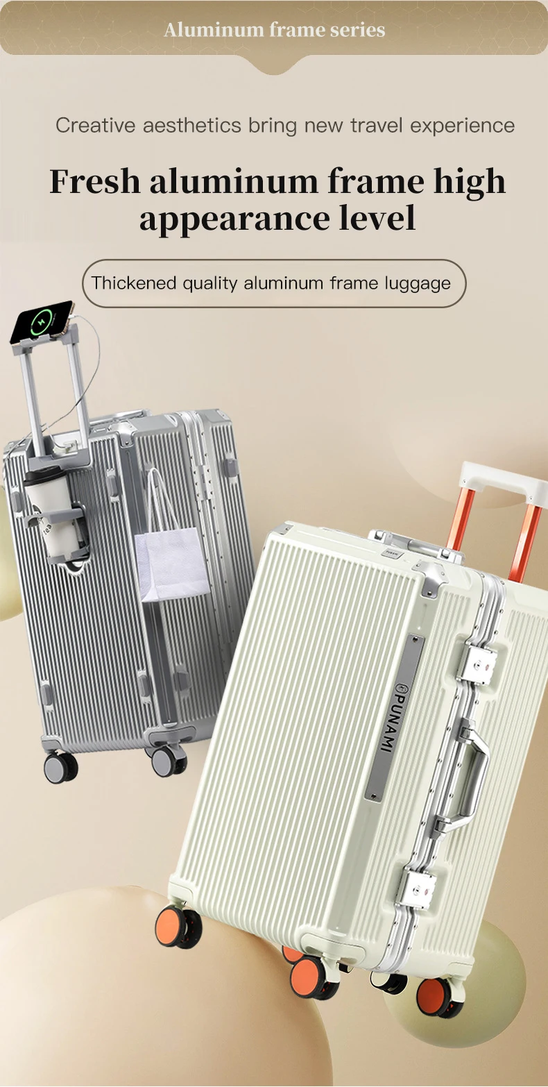 L416 Suitcase Wide Handle Travel Suitcase Men 20 24 26 Carry-On Luggage Women PC Aluminum Frame Trolley Case