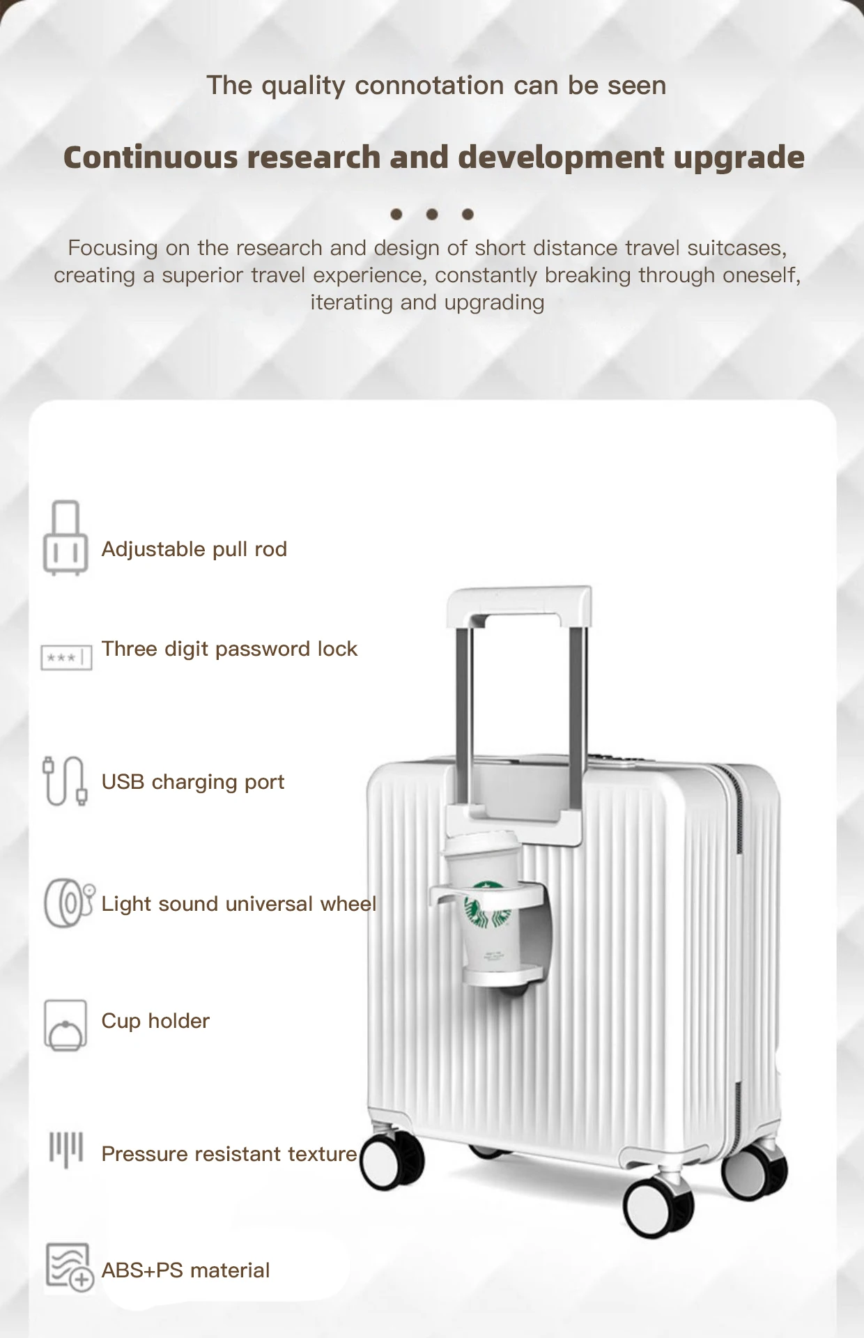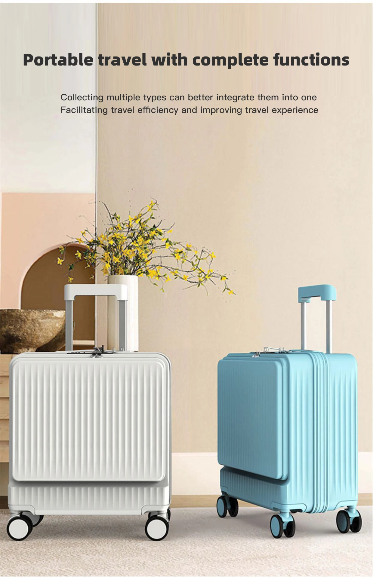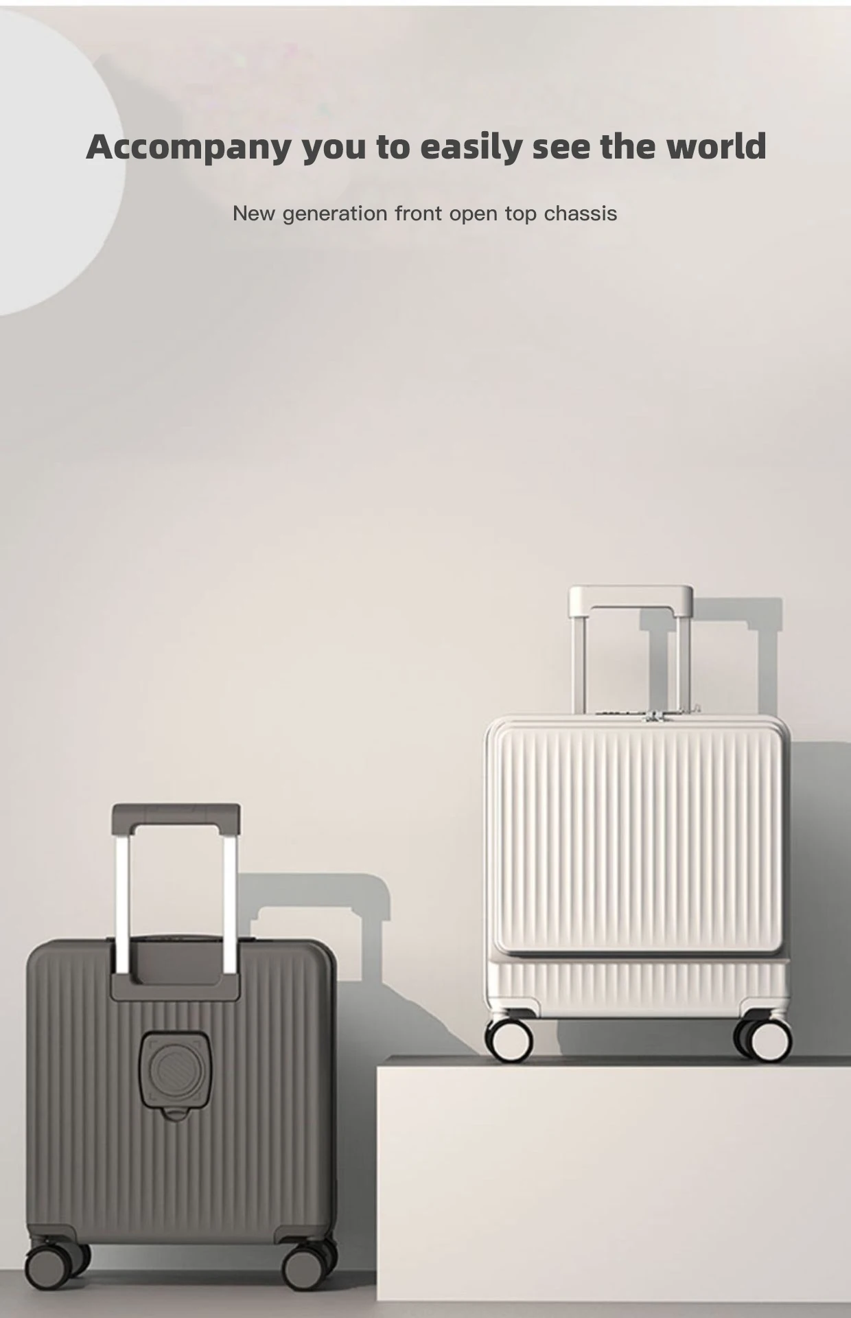 L425 SUSHIMU Boarding-friendly front-opening luggage, trolley suitcases for both men and women, 18-inch silent aluminum-frame