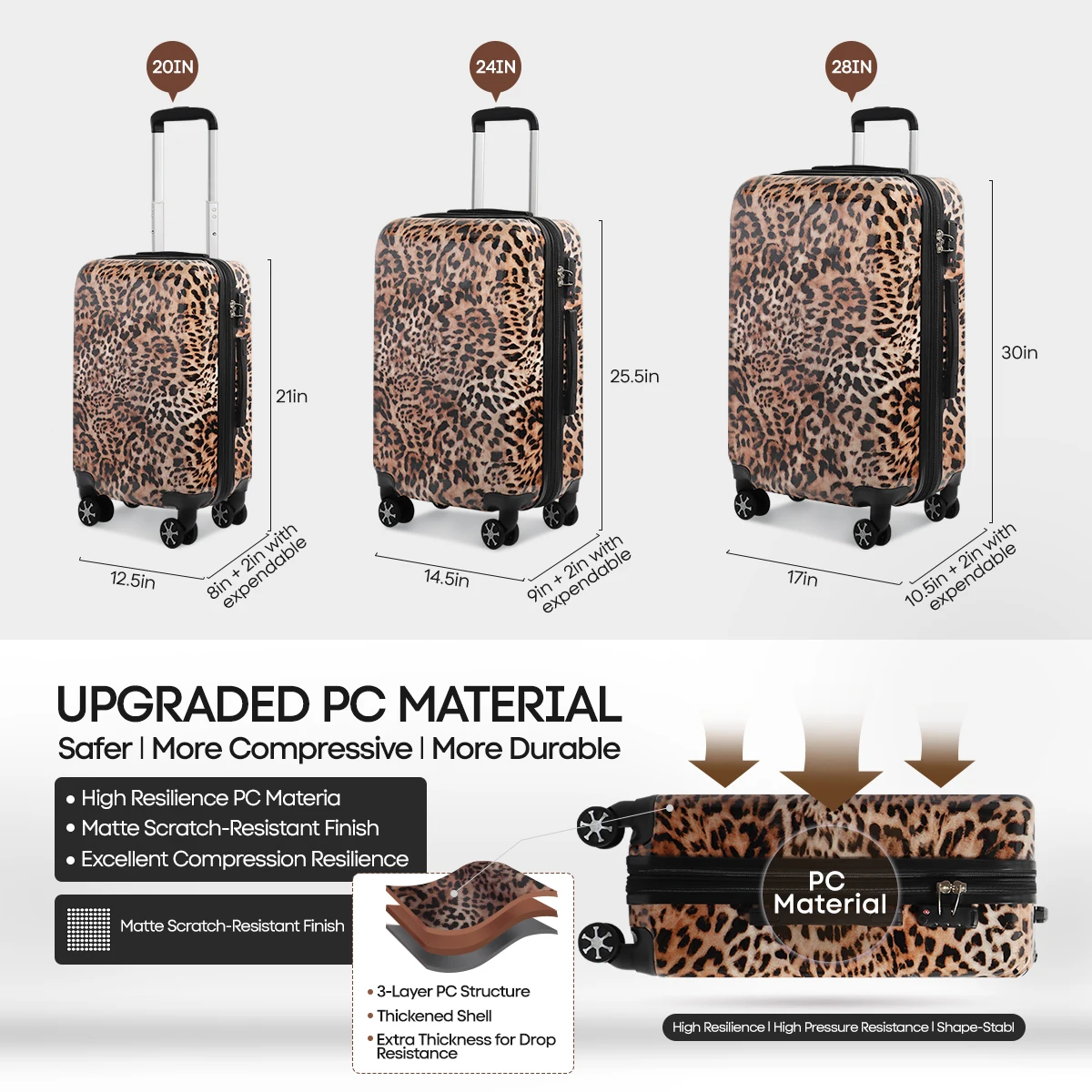 L444 Luggage Set Hardshell expandable suitcase with Spinner Wheels &TSA Lock,Print Lightweight Travel Suitcase Set-20″/24″/28