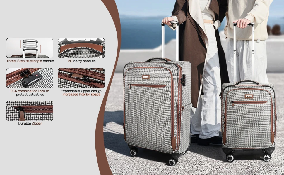 L452 Softside Luggage Sets 20″+26″+30″ Expandable Suitcase with Spinner Wheels +TSA Lock Lightweight Travel Suitcase Set