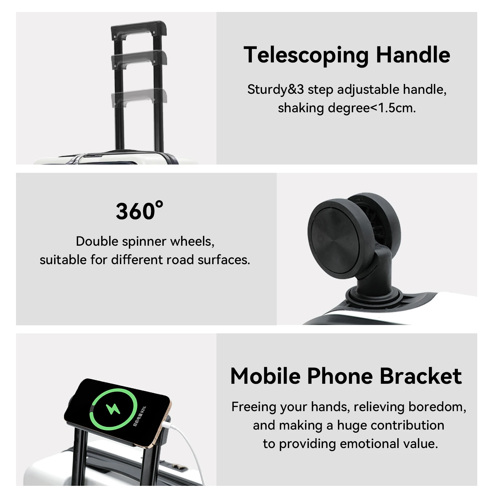 L456 20 Inch Cabin Suitcase Front Opening Spinner Wheel Travel Rolling Luggage For Men Women Trolley Case With TSA Lock,USB Charging