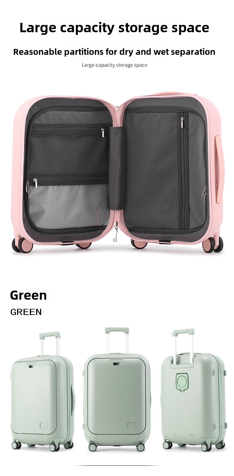 L478 COLENARA 18″20″24 Inch Laptop Suitcase USB Charging Boarding Case Front Opening Trolley Case with Wheels Rolling Luggage