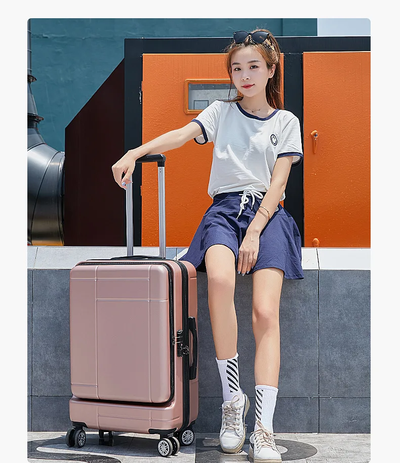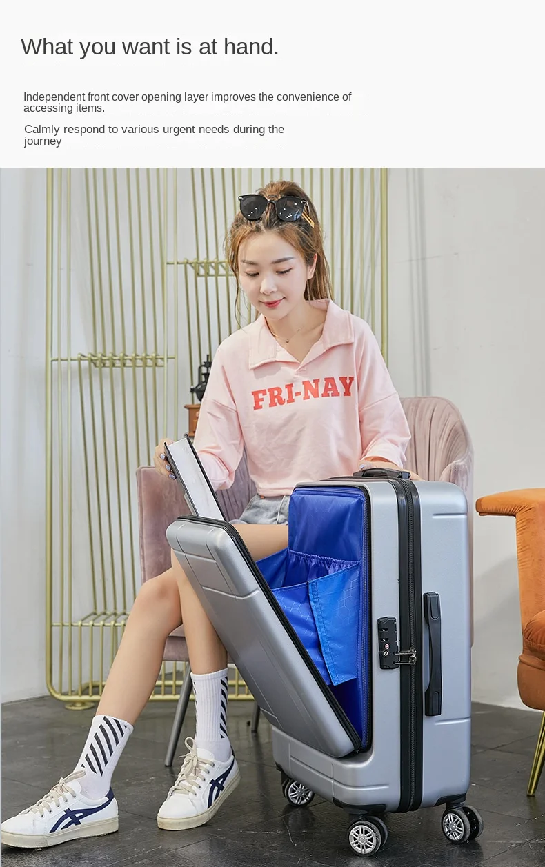 L484 COLENARA High Quality Suitcase Front Opening Laptop Boarding Case USB Charging Trolley Case 20″24 Inch Carry on Travel Luggage