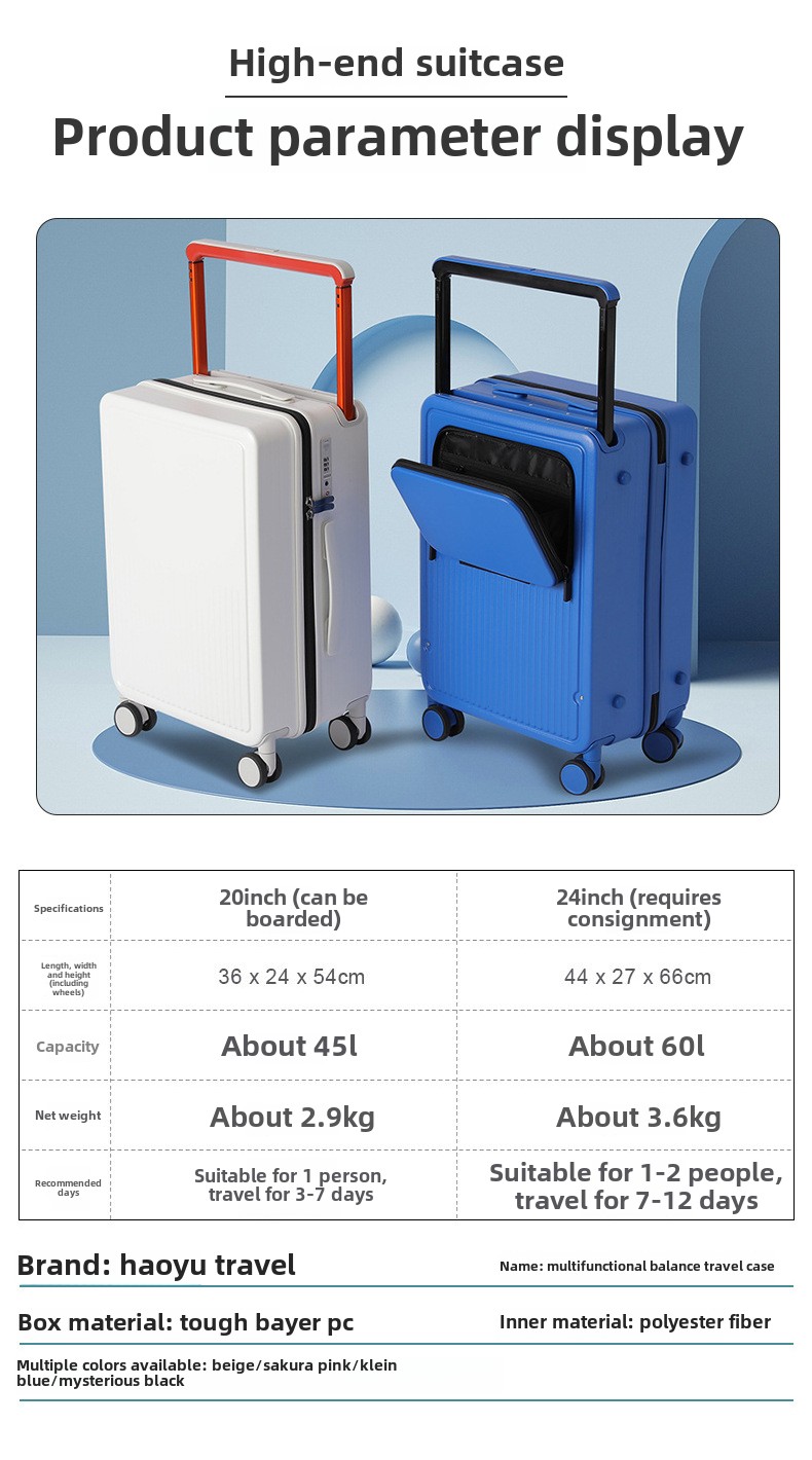 L495 COLENARA USB Charging Luggage 20 Inch Boarding Box 24″ Front Opening Laptop Luggage Case Multifunctional ABS+PC Suitcase