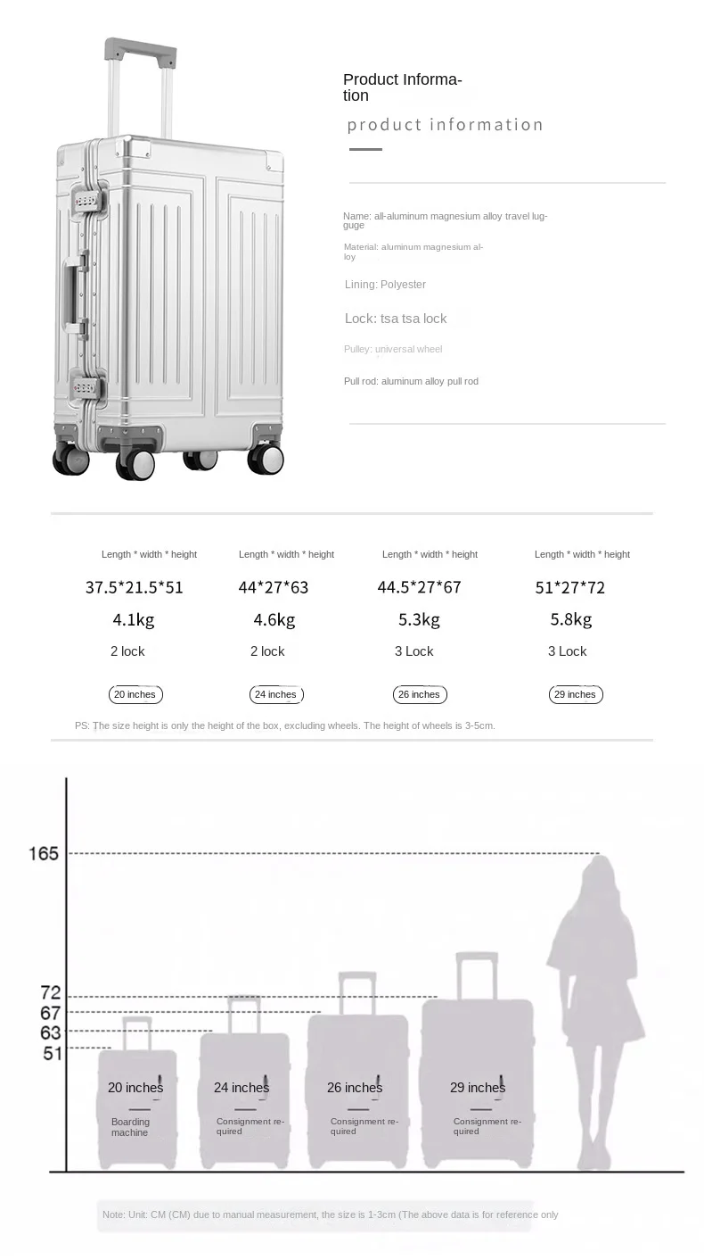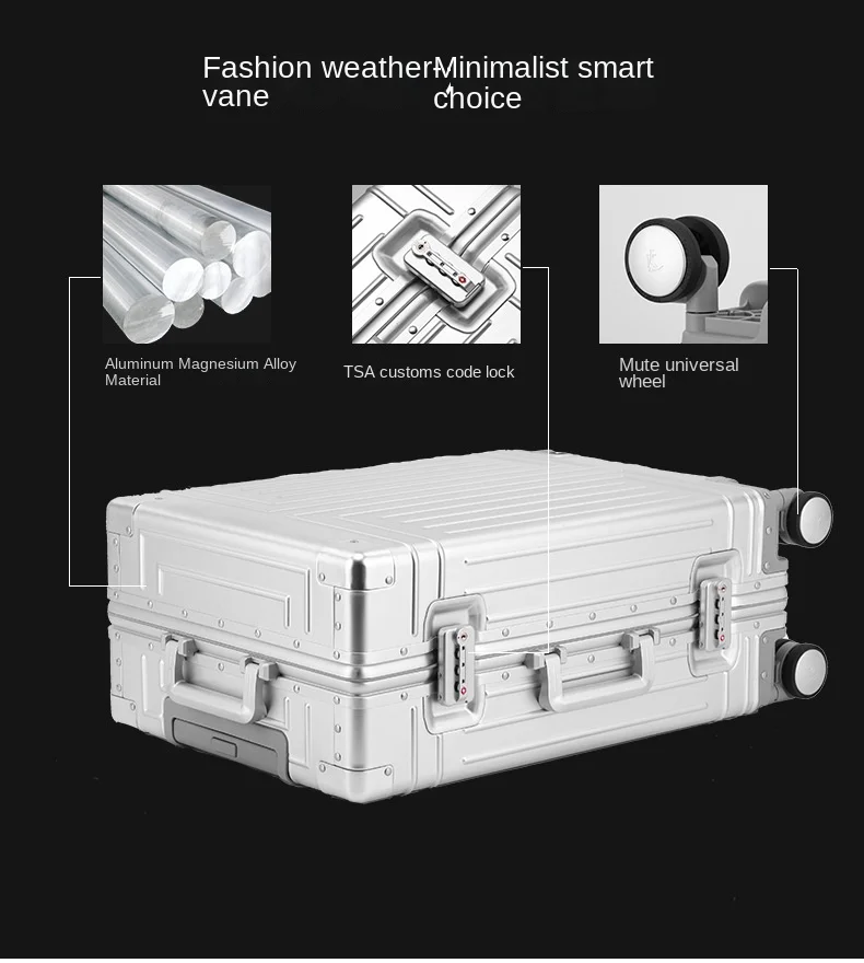 L524 KLQDZMS Cabin Suitcase Full Aluminum Alloy Fashion Business Trolley Case Business Boarding Box 20″24″26″29 Inch Suitcase