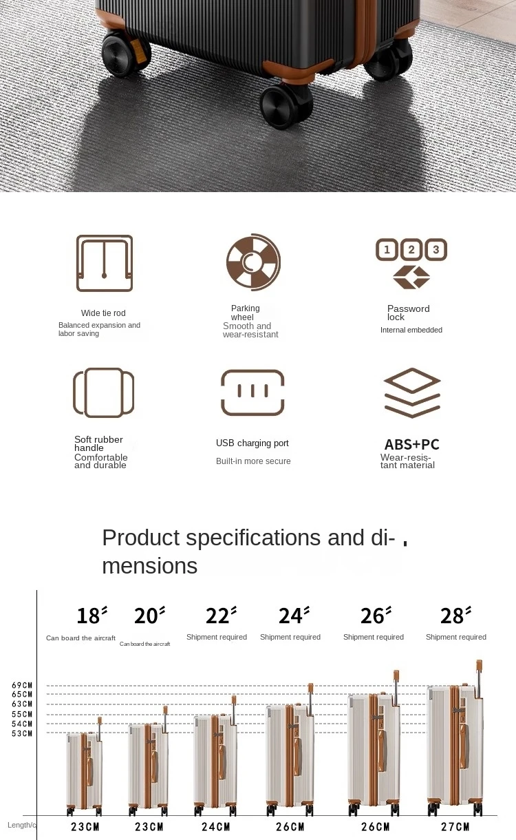Understanding the diverse needs of travelers, the KO-KU Wide Trolley Suitcase is available in multiple sizes, including the compact 18/20 inch and the spacious 26/28 inch options. This versatility makes it suitable for both short weekend getaways and extended business trips. The suitcase's lightweight design ensures that it's easy to lift and carry, while the multifunctional features cater to the dynamic lifestyle of the modern traveler. With the KO-KU Wide Trolley Suitcase, you can travel with confidence, knowing that your luggage is not only stylish but also designed to meet the demands of the modern traveler.